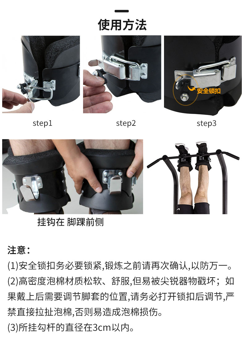 本款倒挂鞋为均码,腿部较细或者较粗人群,请咨询客服后再下单。骨骼受伤等不适合倒挂人群,不建议购买使用本倒挂鞋。