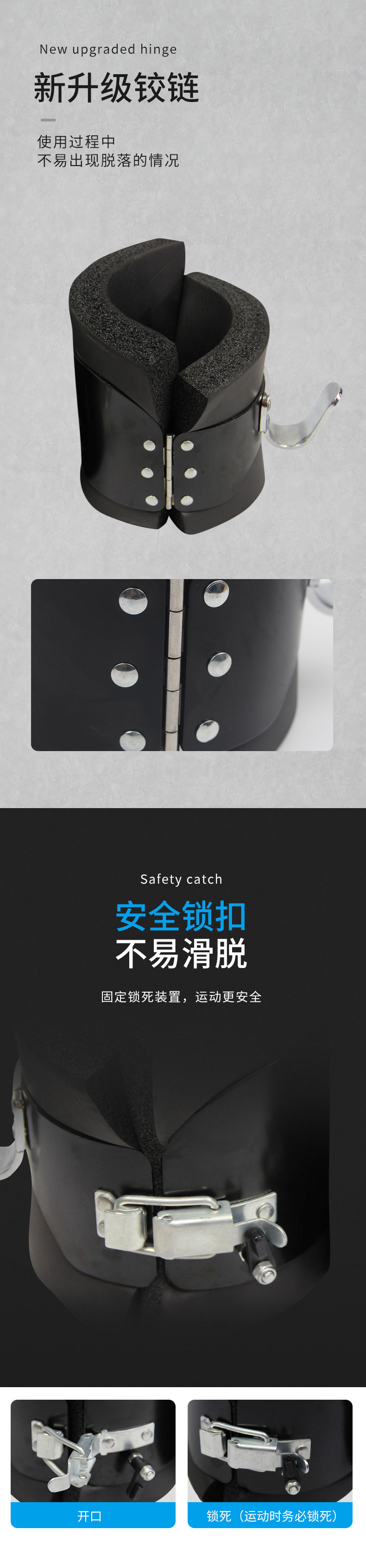 (2)高密度泡棉材质松软、舒服,但易被尖锐器物戳坏;如果戴上后需要调节脚套的位置,请务必打开锁扣后调节,严禁直接拉扯泡棉,否则易造成泡棉损伤。