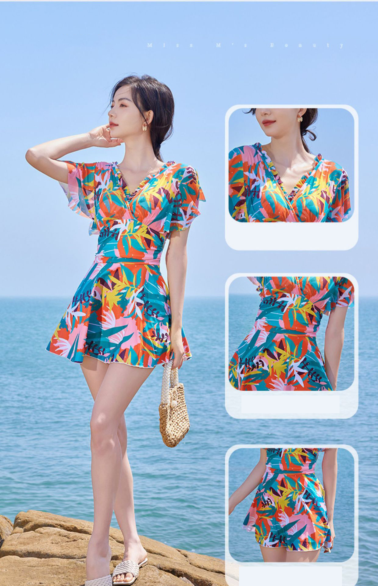 원피스 수영복 여성 국경 간 새로운 폭발 보수적 인 슬리밍 고기 커버 고급 꽃 바다 온천 수영복스토어 가기