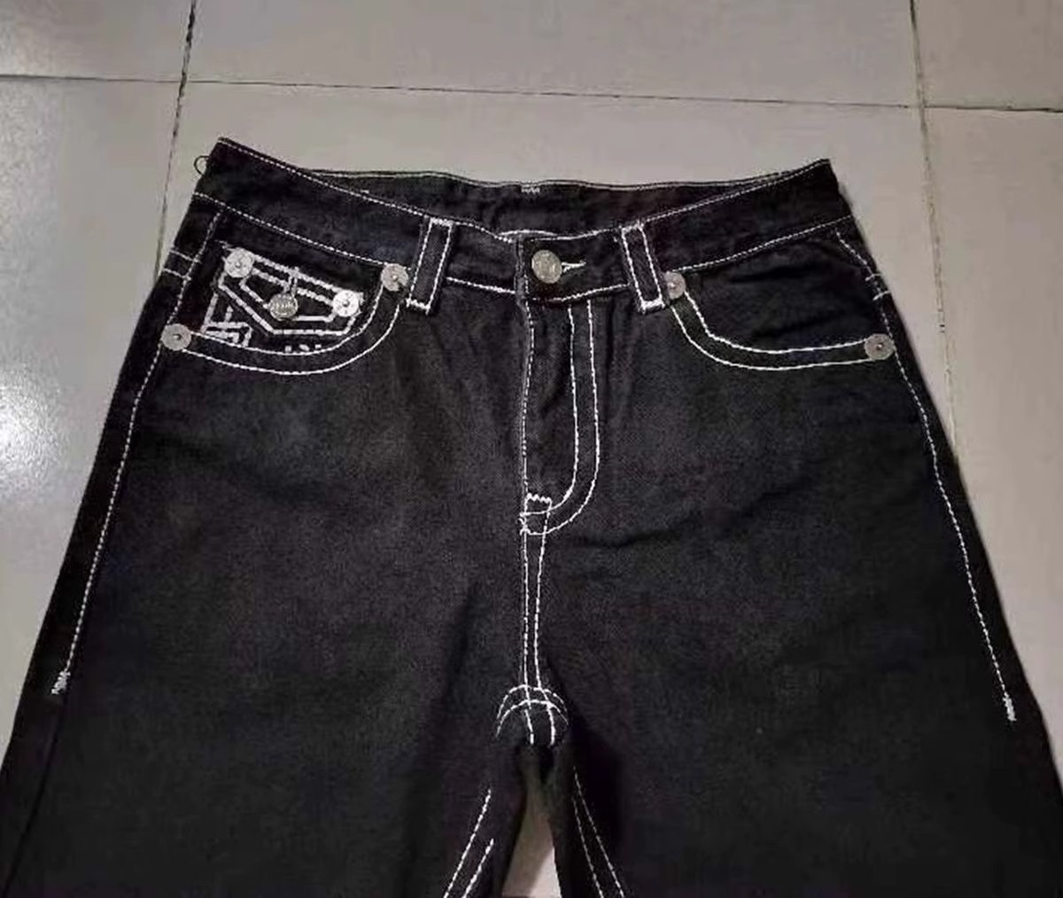 국경 간 전자 상거래 미국 하이 스트리트 패션 브랜드 청바지 흰색 두꺼운 선 부처 종교 스트레이트 캐주얼 바지 남성스토어 가기