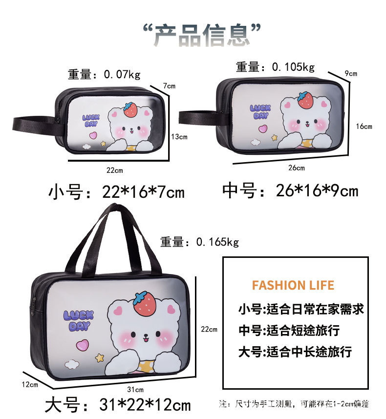 만화 3피스 대용량 화장품 가방, 세면도구 가방, 여행 필수 방수 반투명 가방 보관 가방스토어 가기