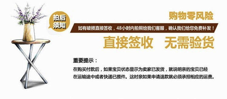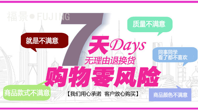 【7天内无理由退换】:本店以顾客满意为核心,如收到产品不满意,可在7天内无理由退换,来回运费及运回时产生的运输破损由顾客承担。