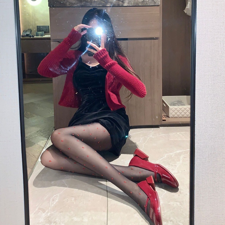 섹시한 빨간 사랑 점 나비 스타킹 울트라 얇은 아름다운 다리 사랑 블랙 실크 메쉬 레드 핫 소녀 자카드 팬티 스타킹 여성스토어 가기