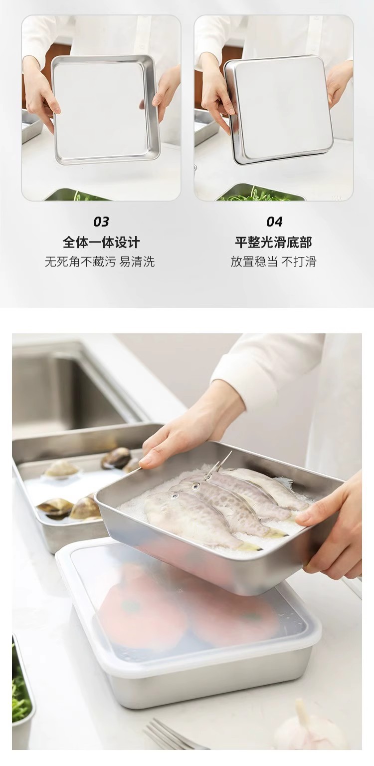 뚜껑이 있는 스테인리스 사각 접시, 가정용 직사각형 자석 소형 신선도 유지 상자, 트레이, 수건 진열 접시, 자석 부착 사각 용기스토어 가기