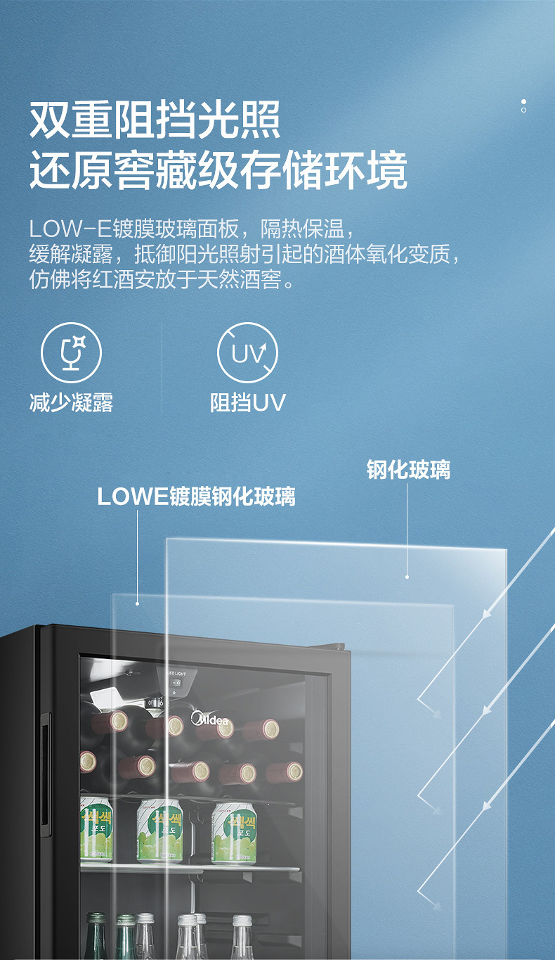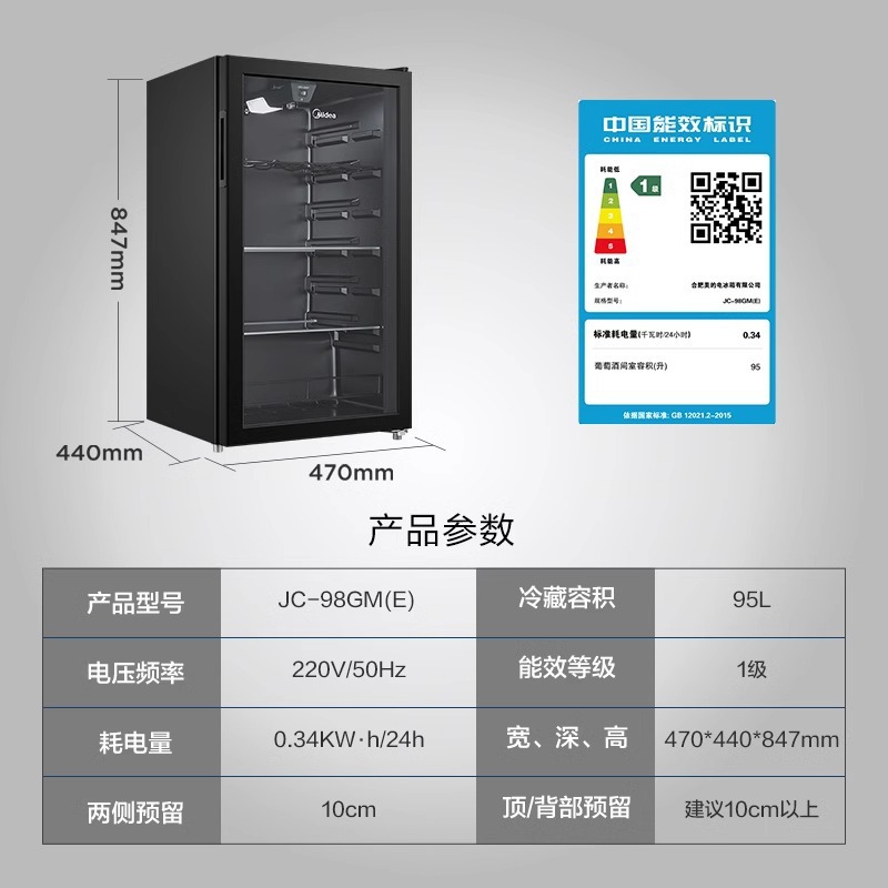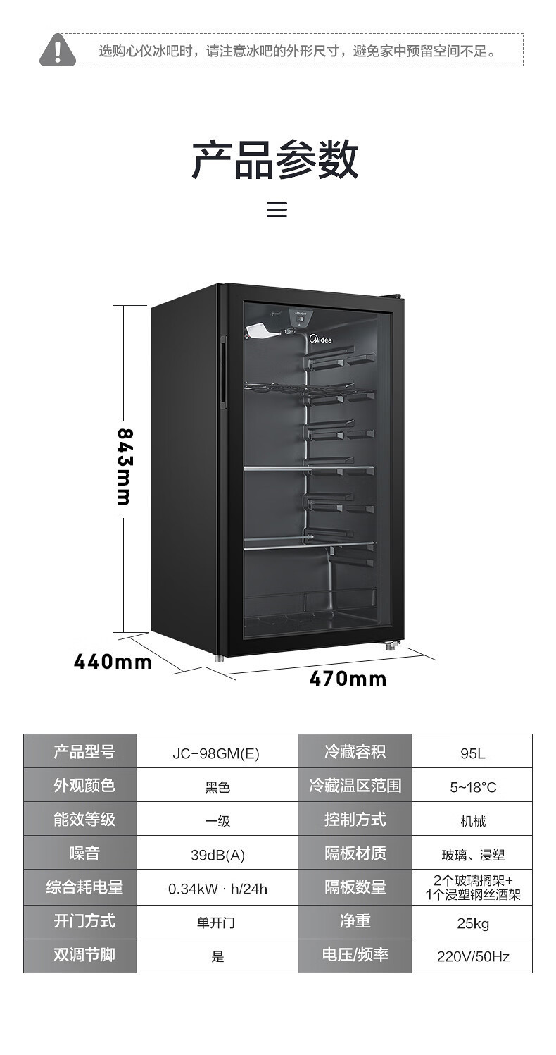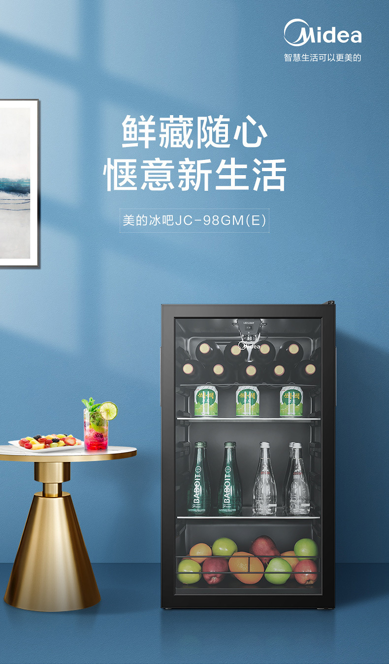 Midea JC-98GM(E) 가정용 신선한 레드 와인 캐비닛 아이스 바 냉장 시가 와인 캐비닛 유리 냉장고 음료 냉장고스토어 가기