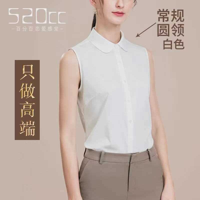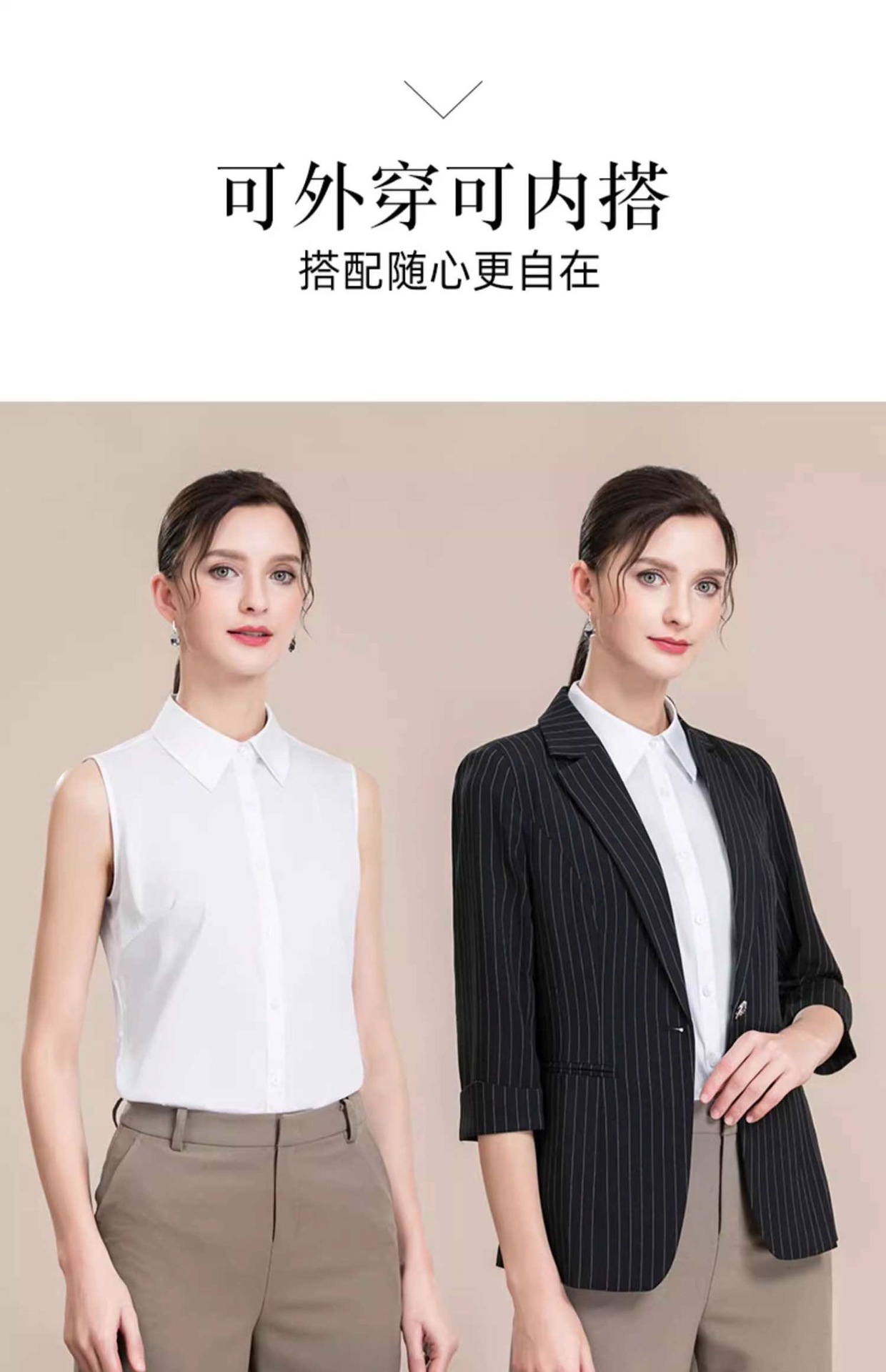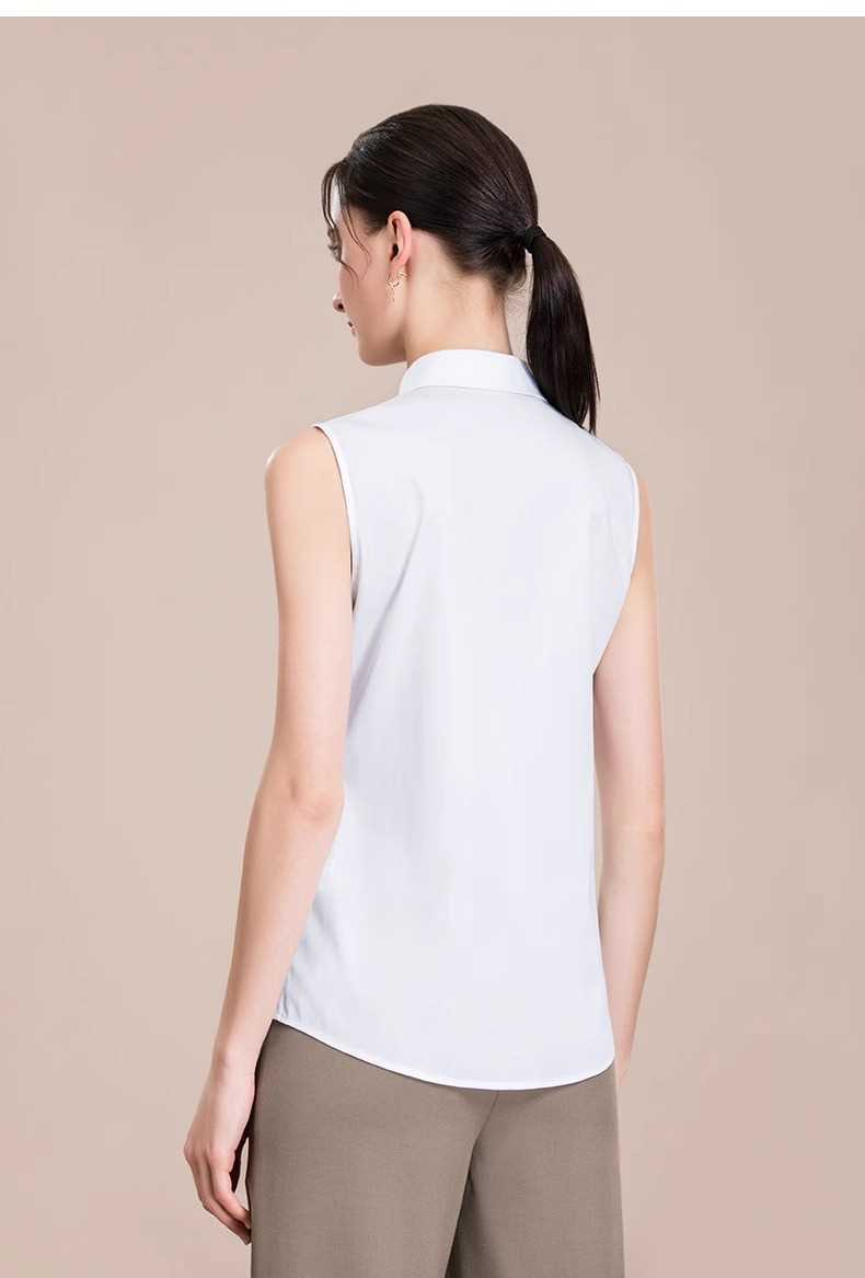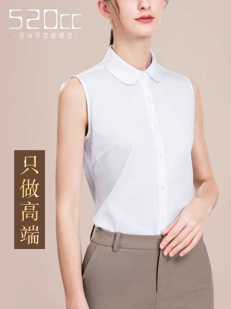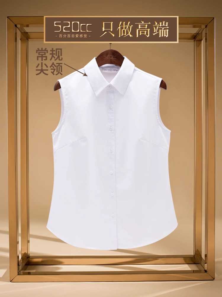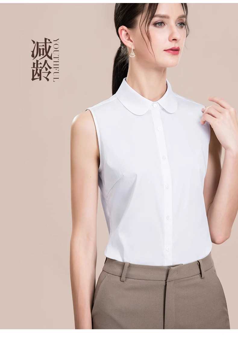 흰색 민소매 셔츠 여성 패션 간단한 비즈니스 착용 주름 셔츠 슬림 핏 베이스 포인팅 칼라 탑 여름 새로운스토어 가기