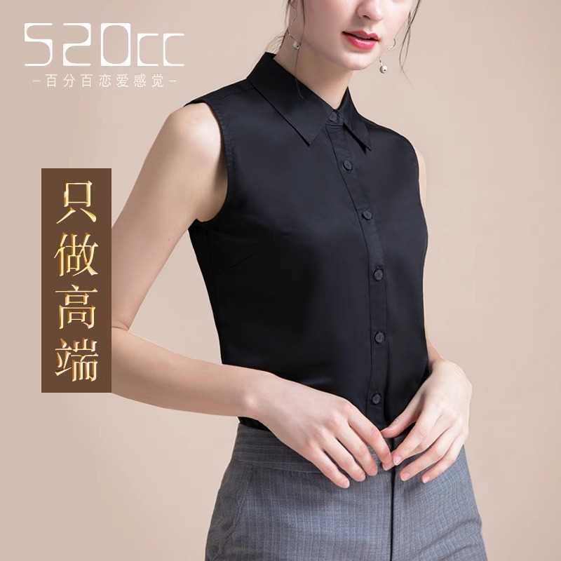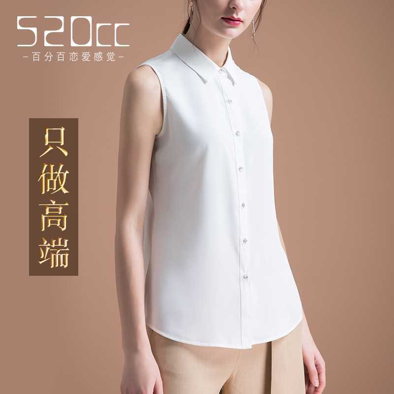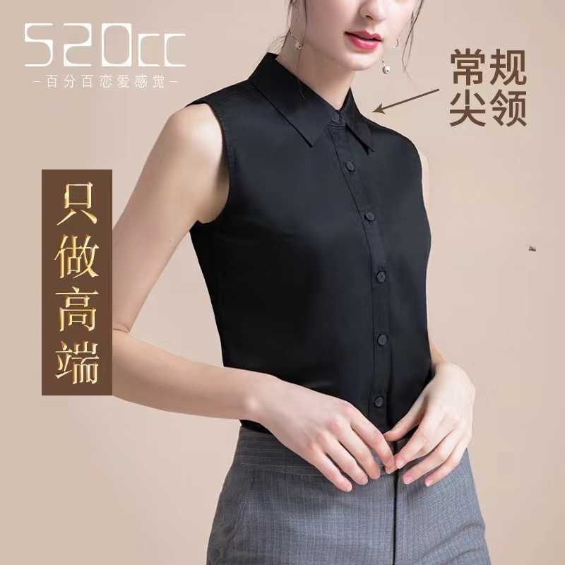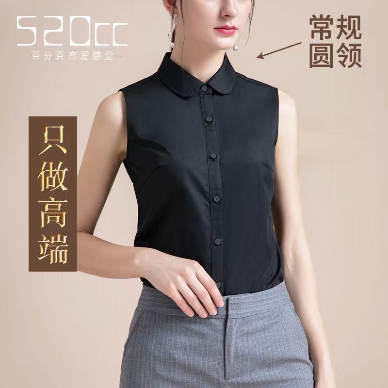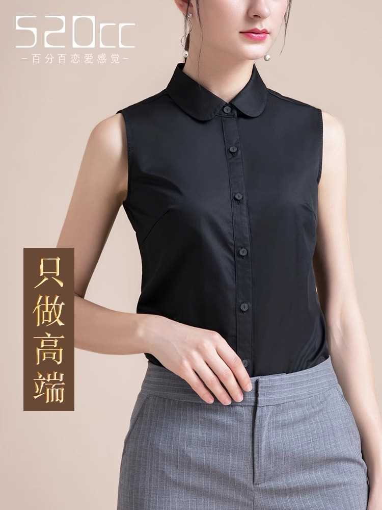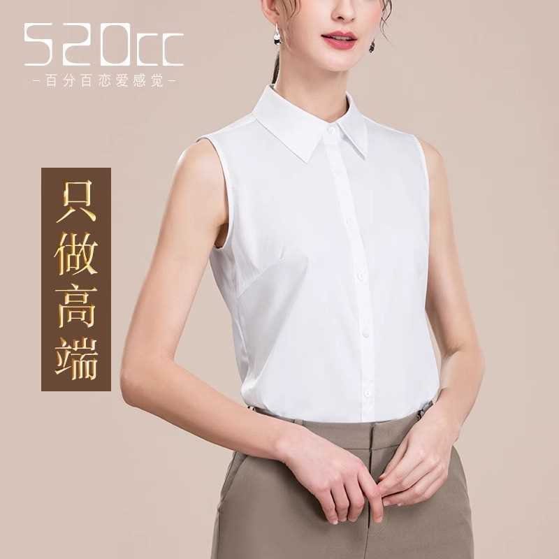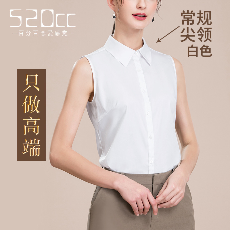 흰색 민소매 셔츠 여성 패션 간단한 비즈니스 착용 주름 셔츠 슬림 핏 베이스 포인팅 칼라 탑 여름 새로운스토어 가기