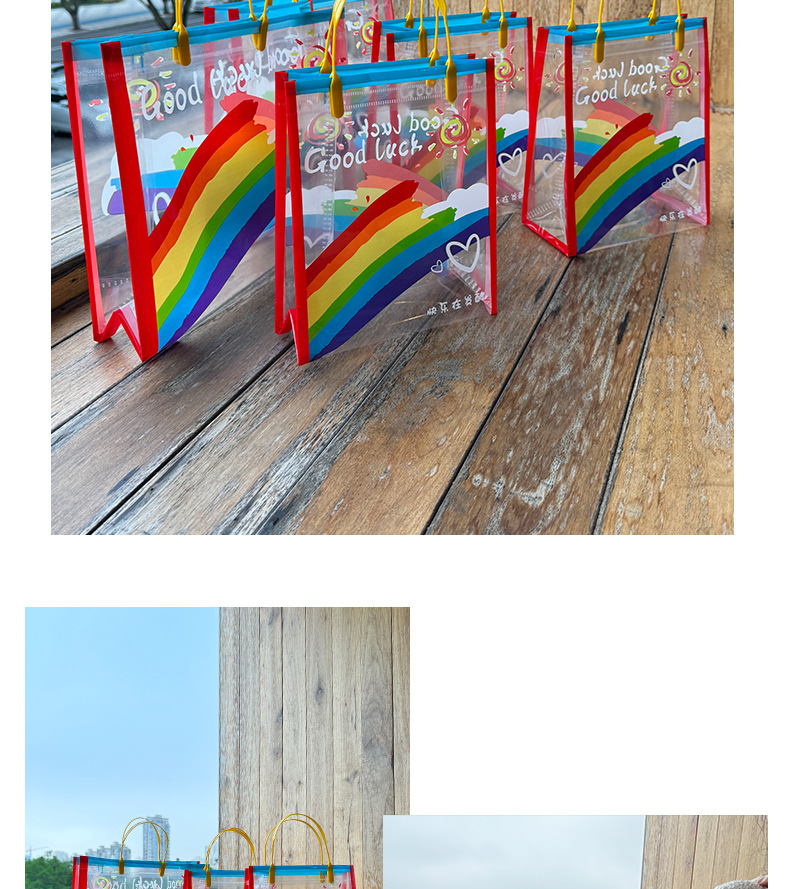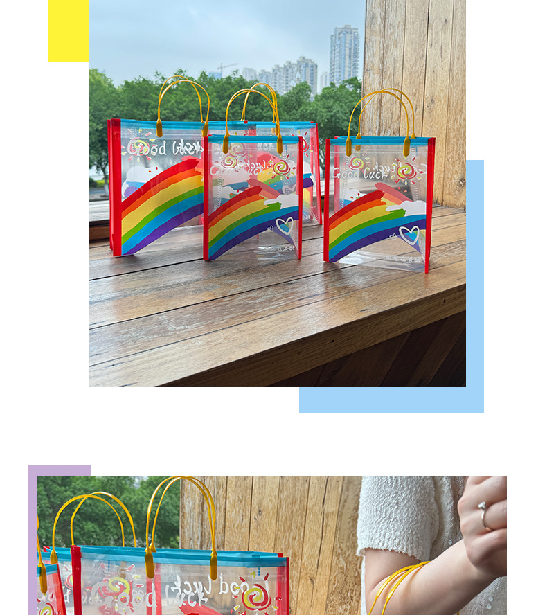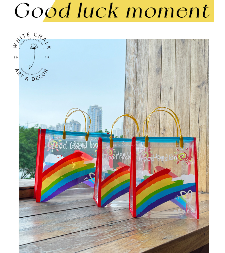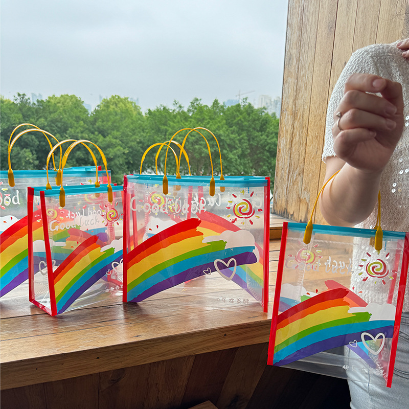 무지개 PVC 핸드백 유치원 생일 선물 가방 투명 가방 작은 선물 유치원 동반자 선물 가방스토어 가기