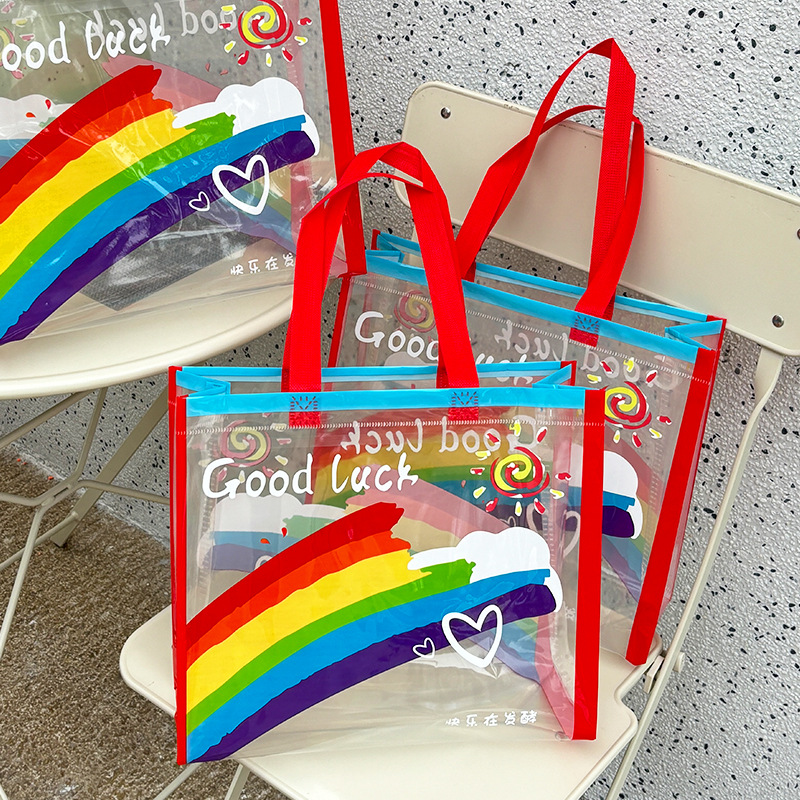 무지개 PVC 핸드백 유치원 생일 선물 가방 투명 가방 작은 선물 유치원 동반자 선물 가방