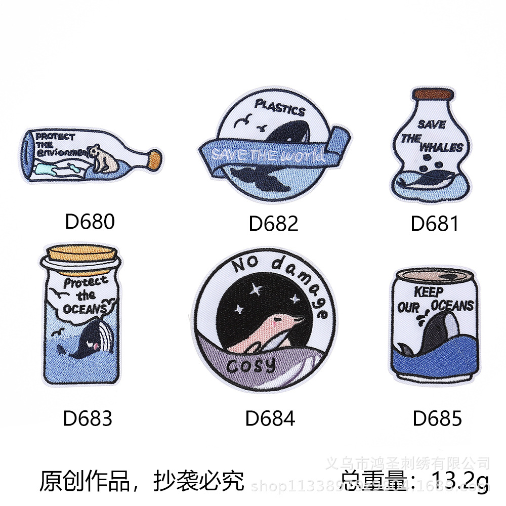 자수 천 스티커, 창의적인 파란색과 흰색 색상, 컴퓨터 자수 천 스티커, 우유병 의류 장식 스티커, 가방 및 의류 액세서리스토어 가기