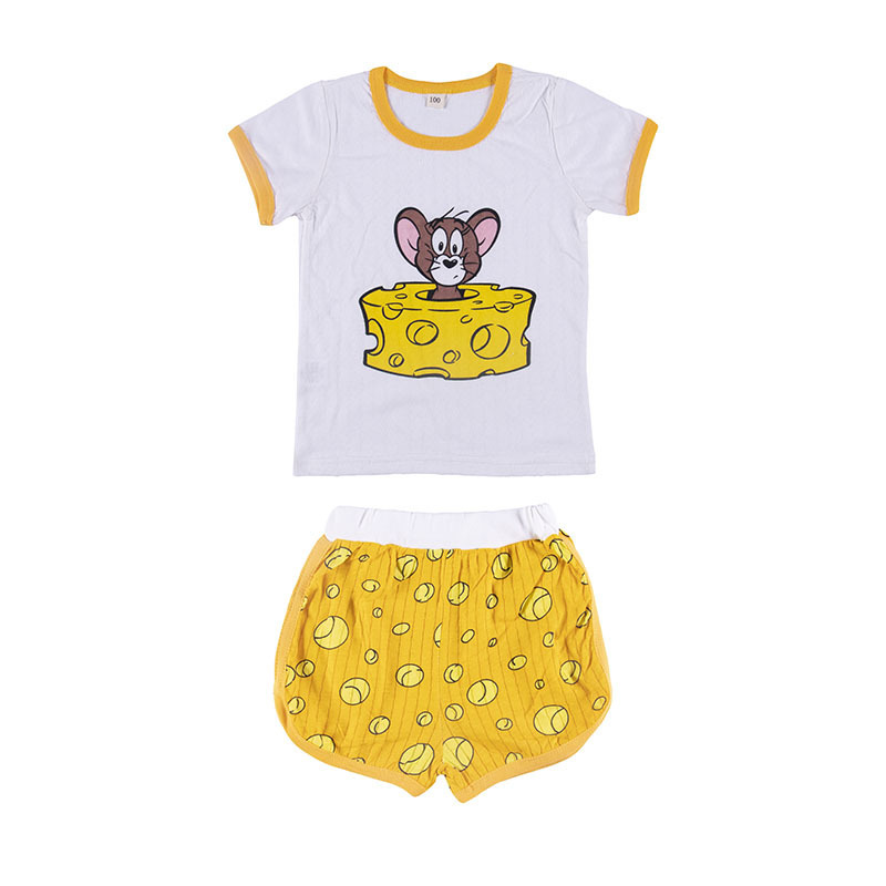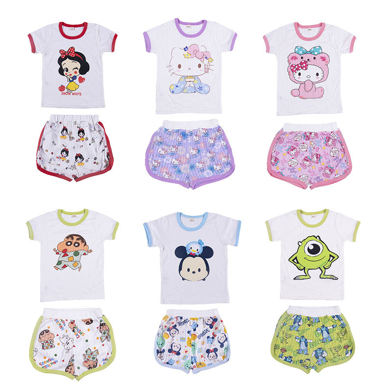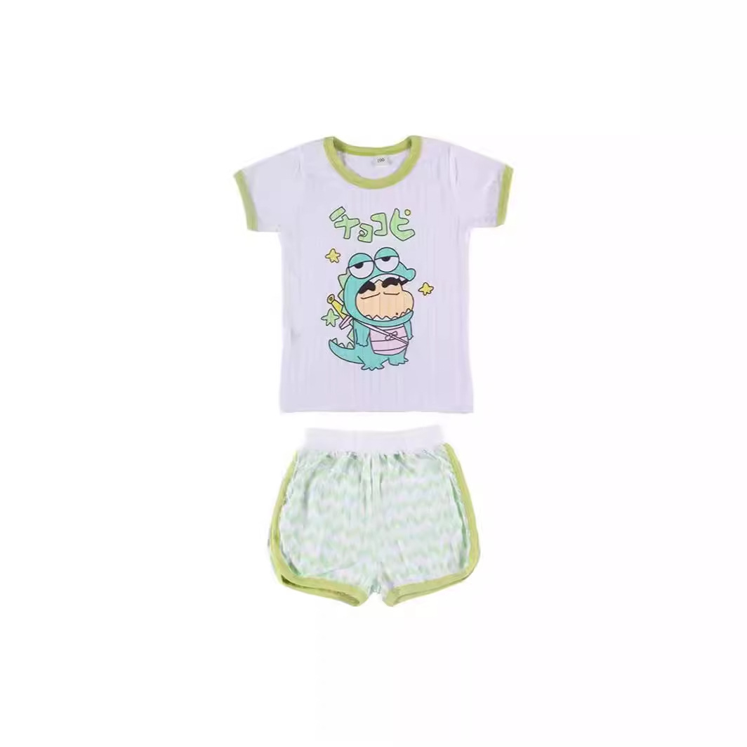 새로운 일본 스타일 호흡 면 새로운 여름 반팔 반바지 새로운 중소 소년 아기 소녀 호흡