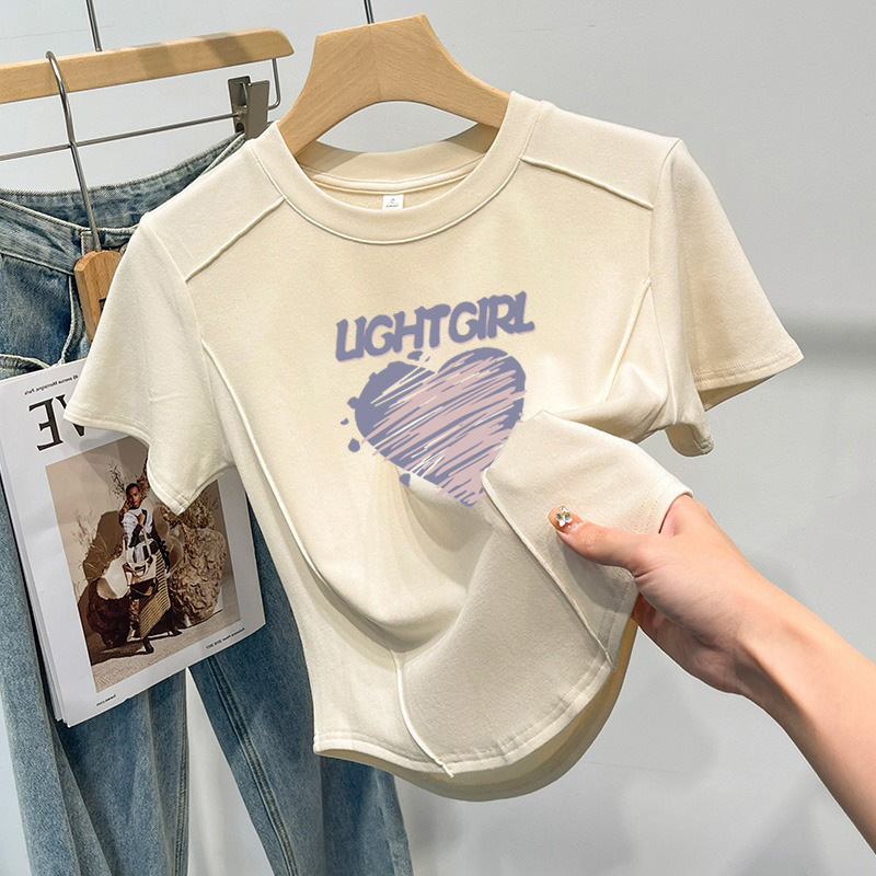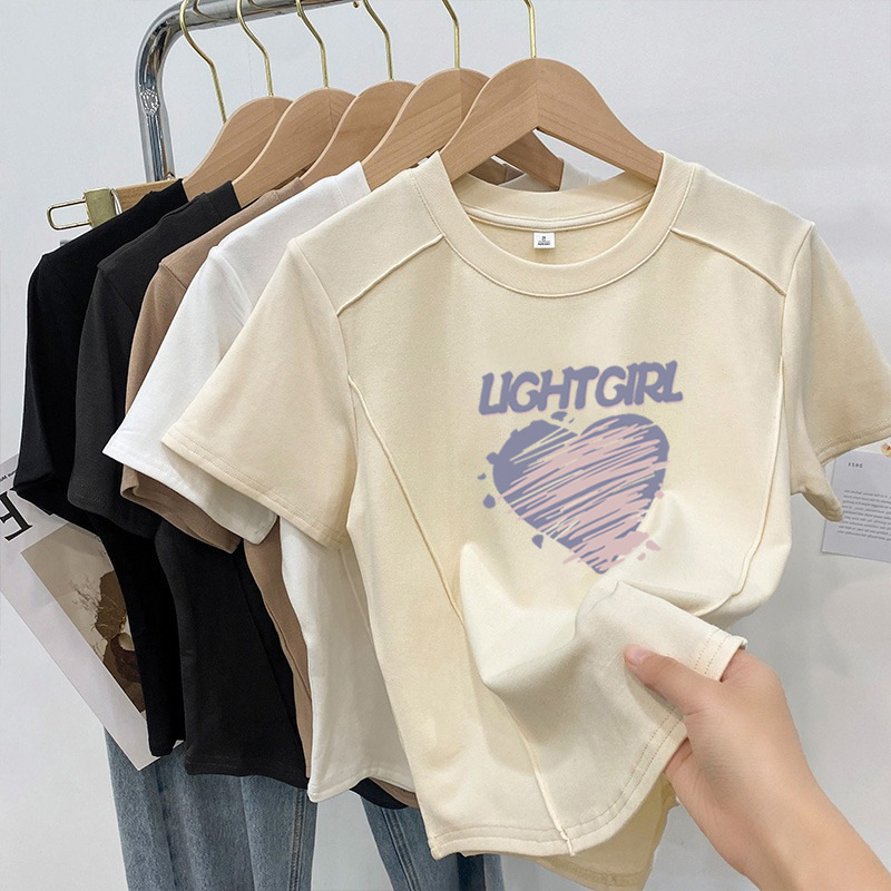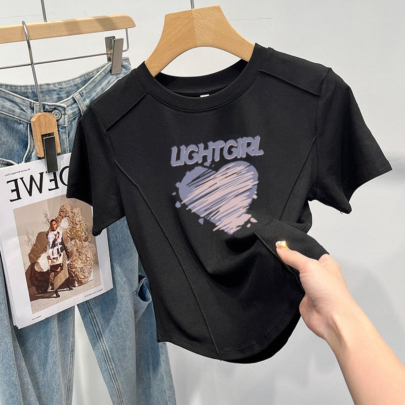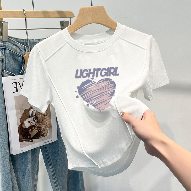 통통한 소녀 어깨 반팔 티셔츠 여성 여름 2024 새로운 디자인 센스 틈새 슬림 핏 슬리밍 피쉬 뼈 커버 탑스토어 가기