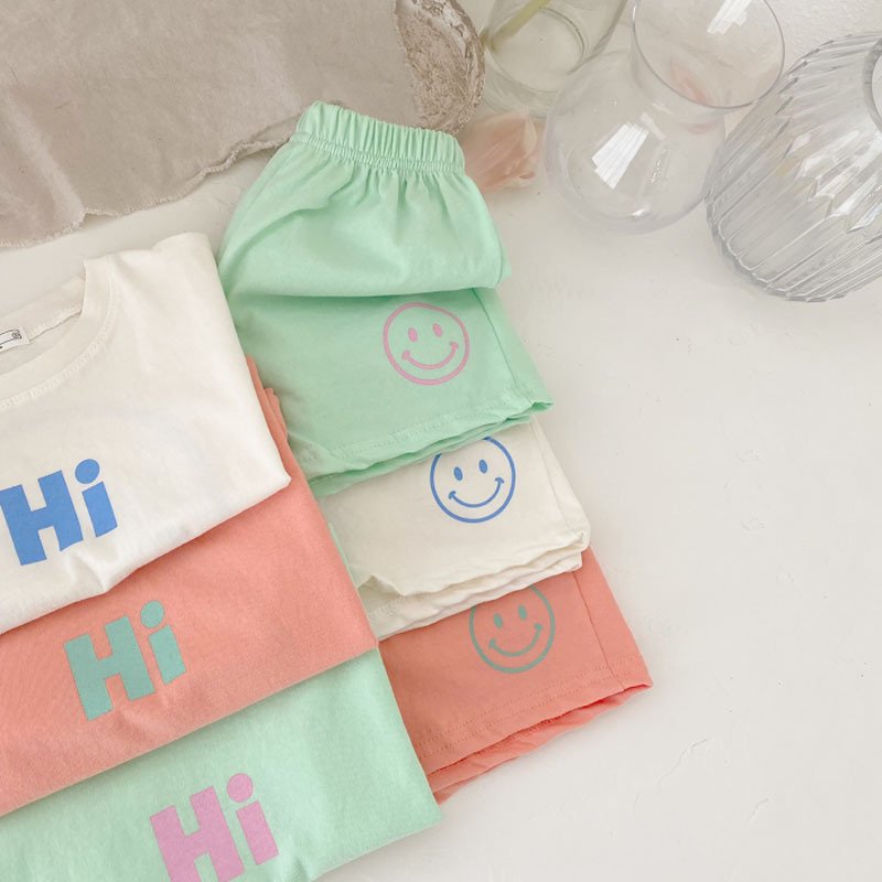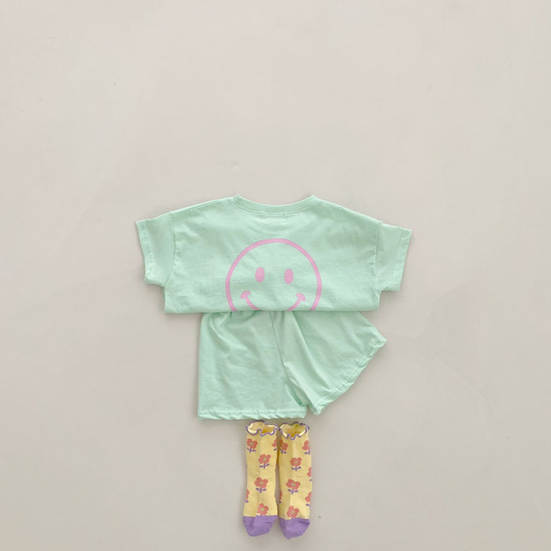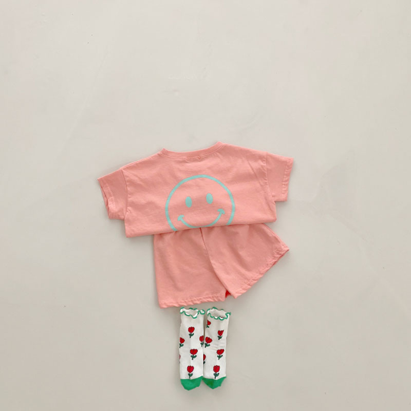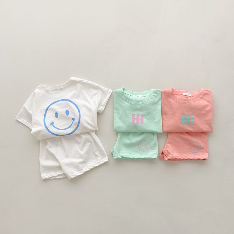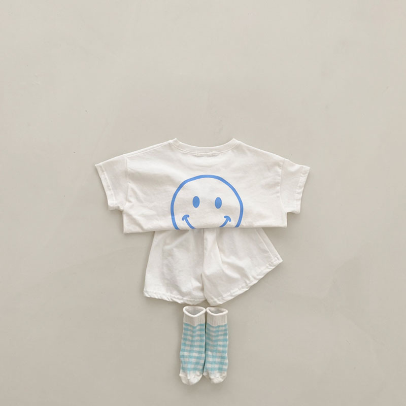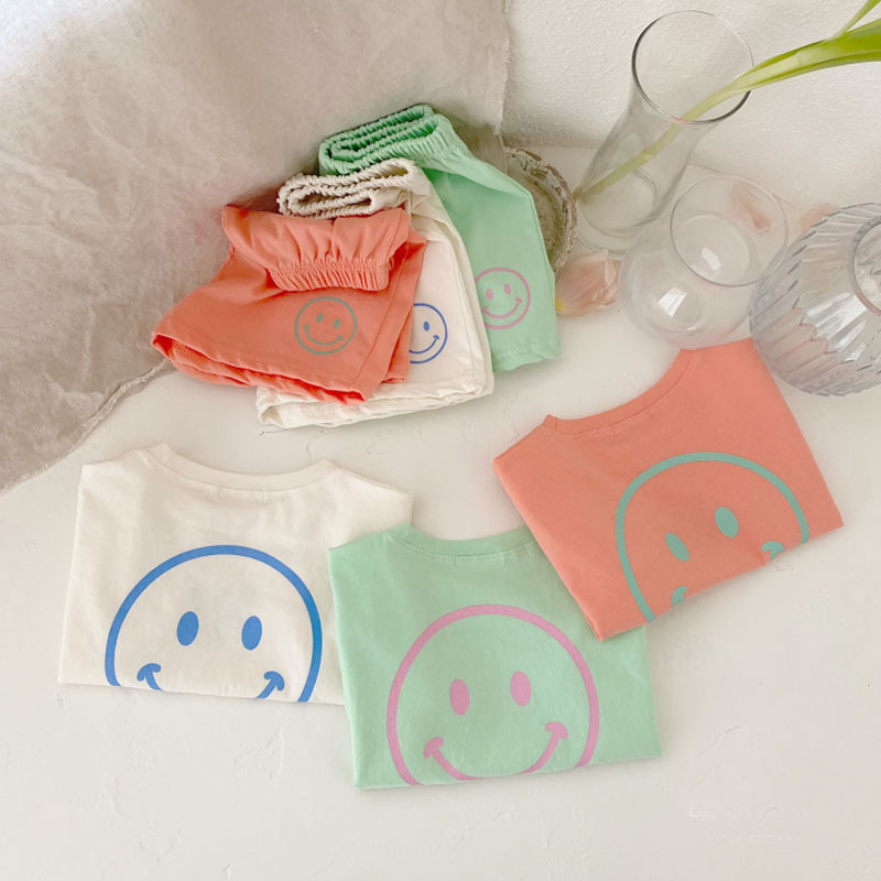 夏季纯棉笑脸印花短袖+短裤两件套