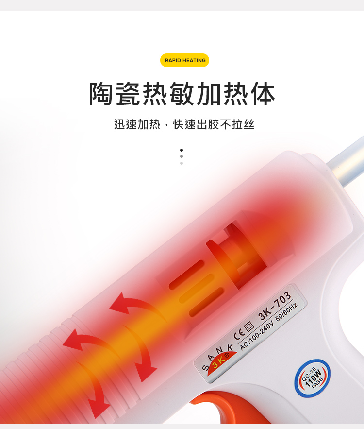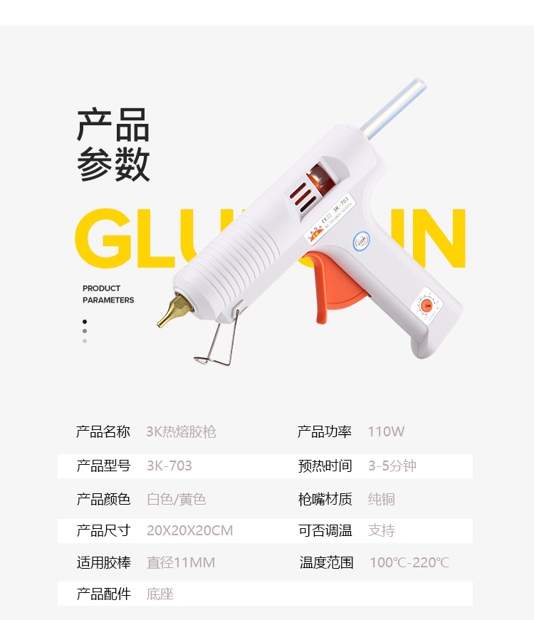 • 단일 3K 흰색 110W 온도 조절 글루건