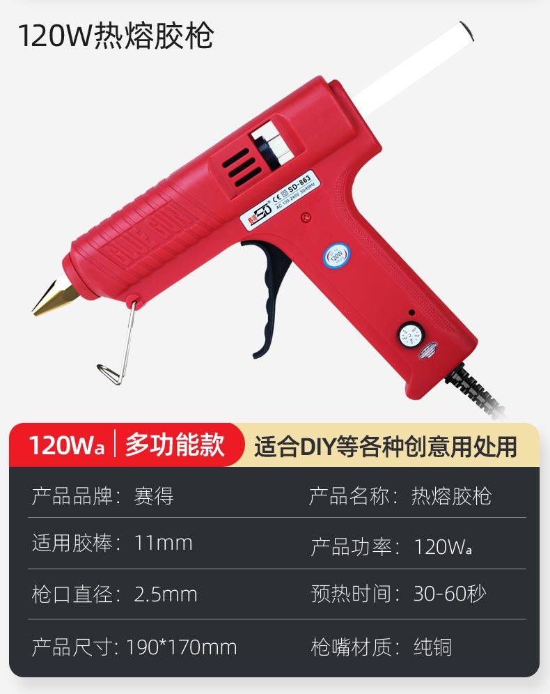 Sedel 전기 뜨거운 용융 접착제 총 가구 조정 가능한 온도 110 와트 접착제 누출 없음 접착제 산업 등급 수동 접착제 스틱 고출력 11mm
