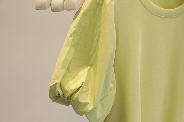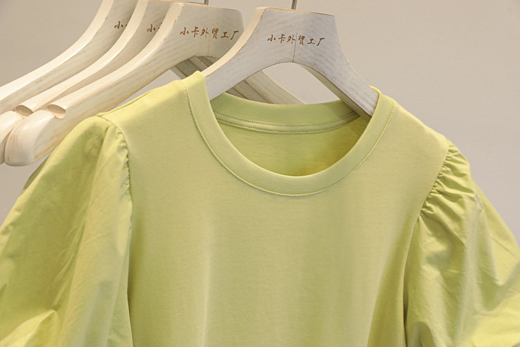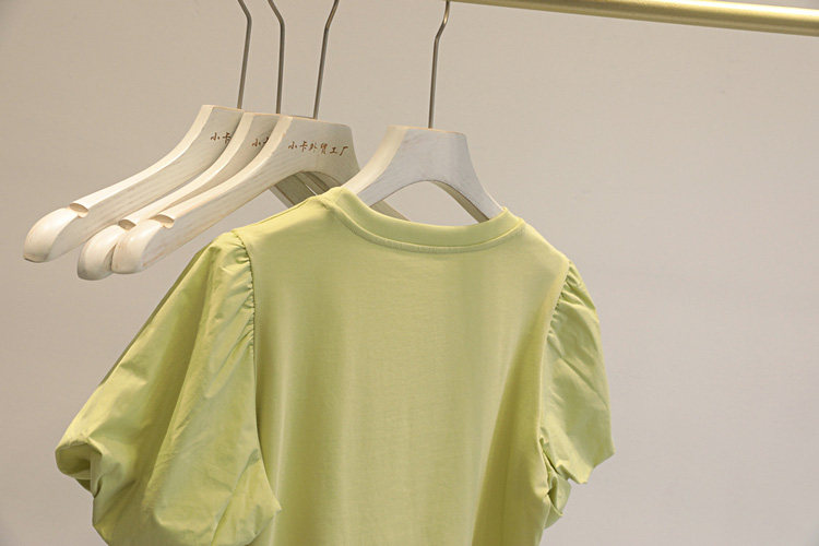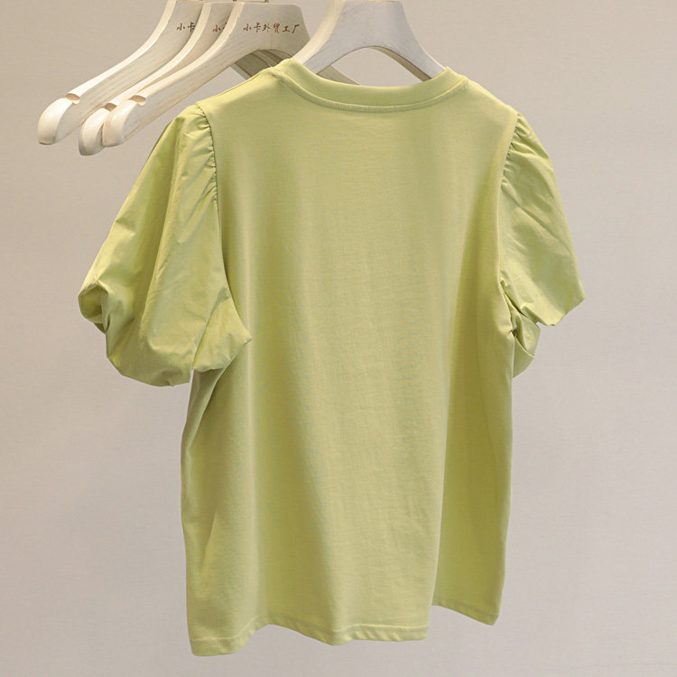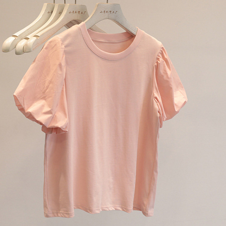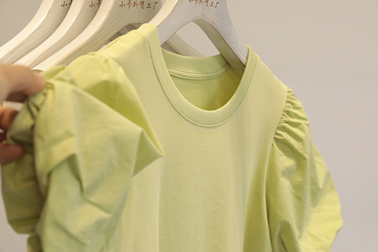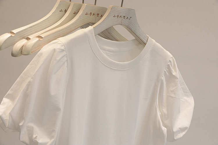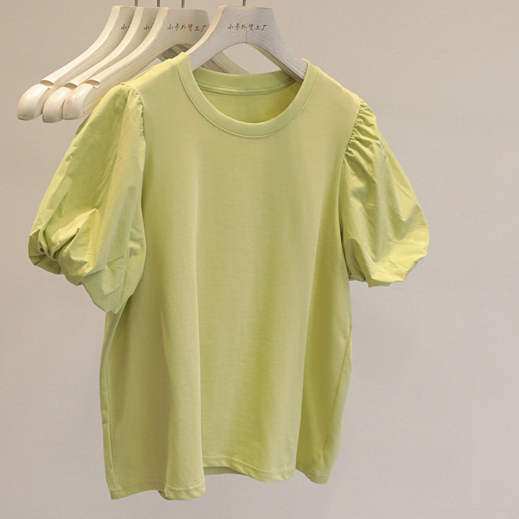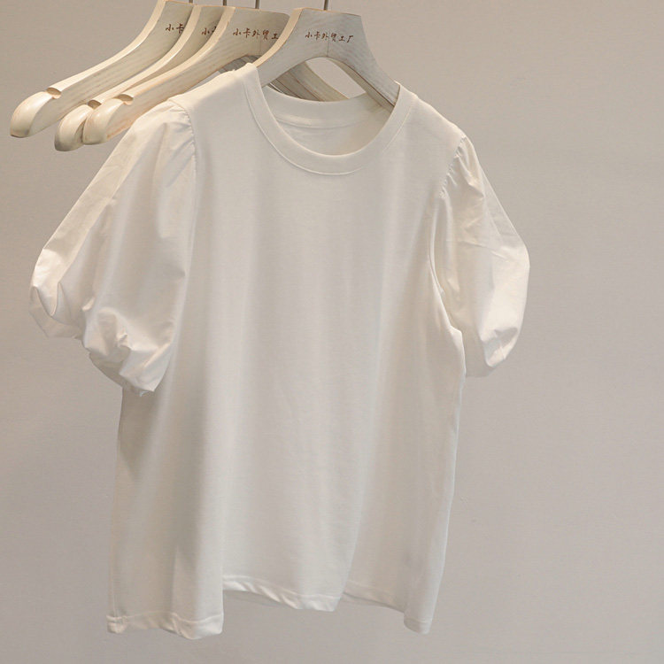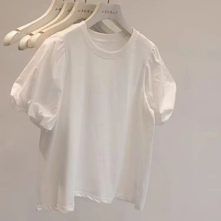 나이를 줄이는 올 매치 퍼프 슬리브 라운드 넥 반팔 티셔츠 여성 여름 매일 느슨한 캐주얼 솔리드 컬러 탑