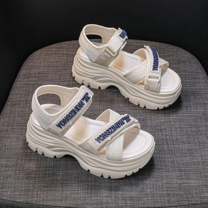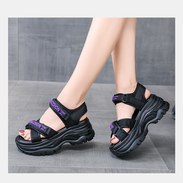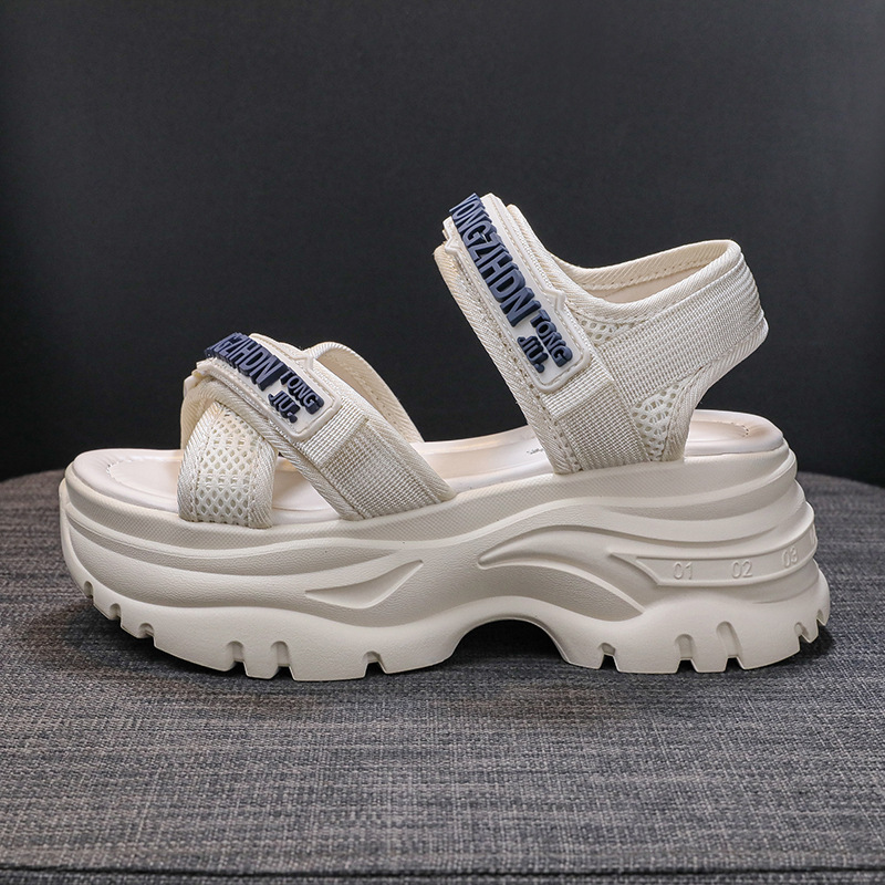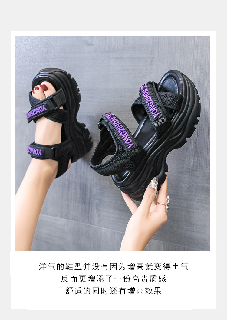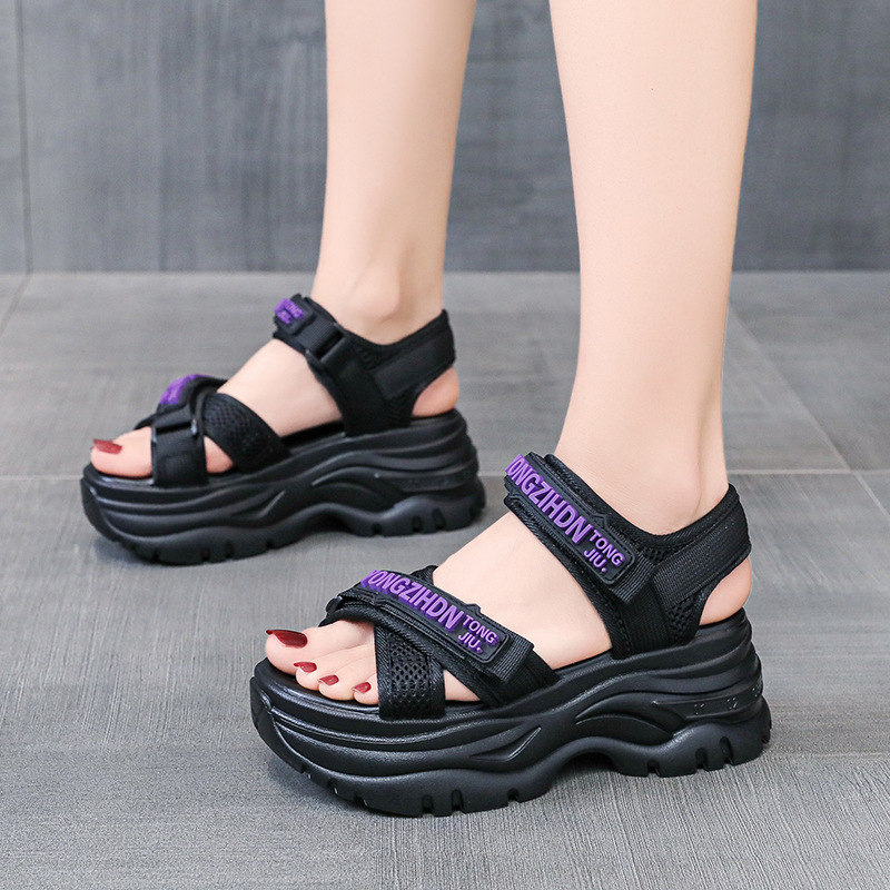 여름 두꺼운 밑창 샌들 여성의 2024 새로운 머핀 부드러운 밑창 높이 증가 여성 신발 올매치 스포츠 패션 비치 슈즈스토어 가기