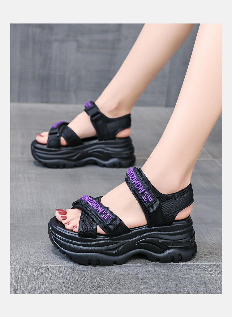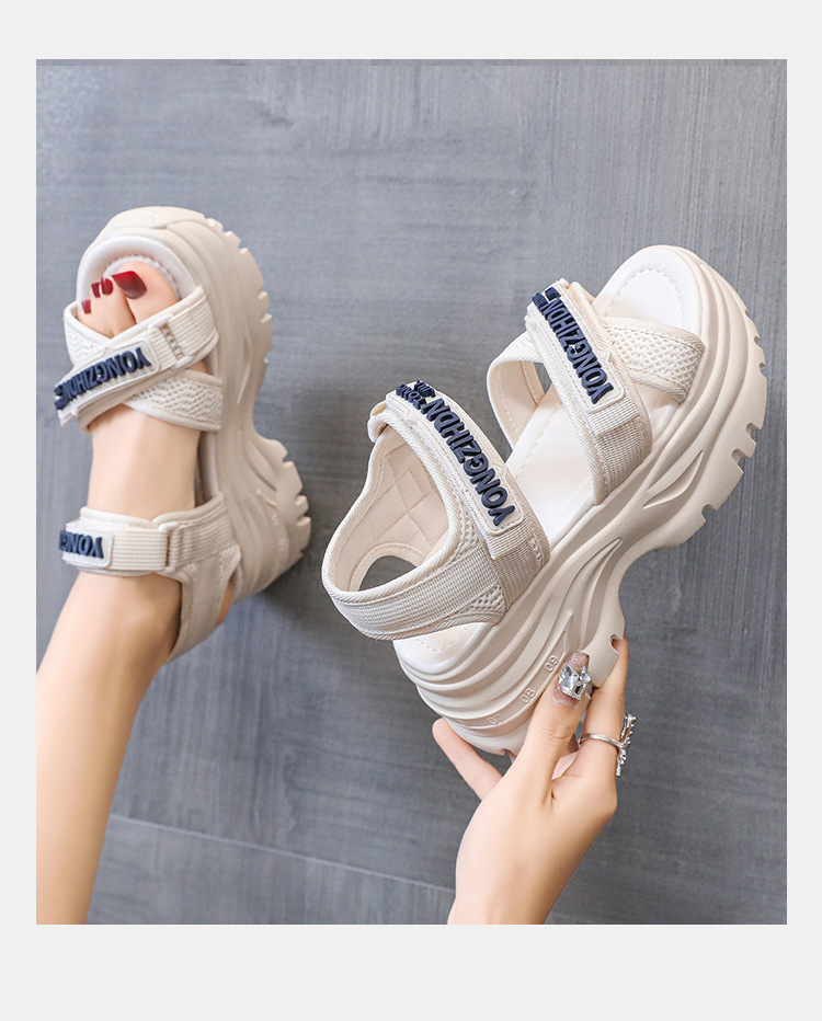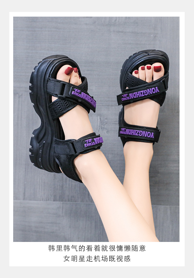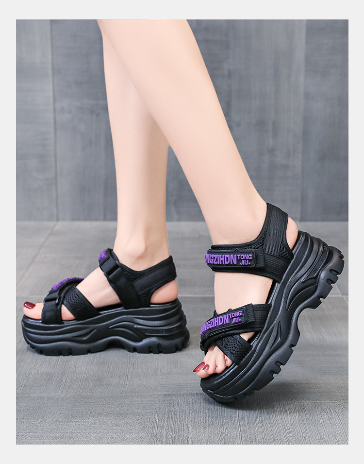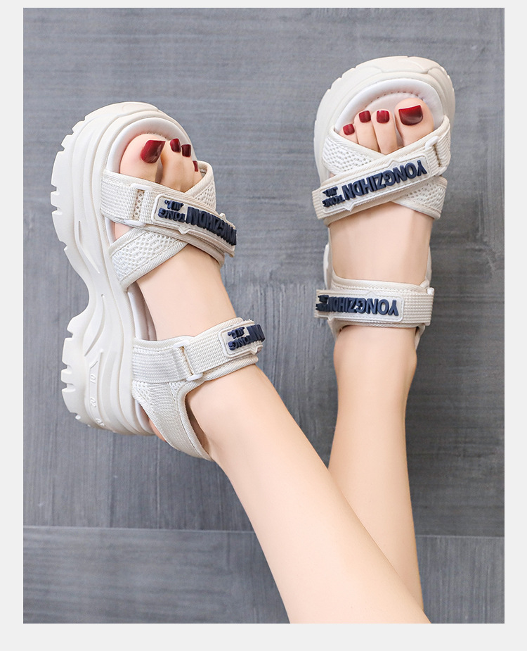여름 두꺼운 밑창 샌들 여성의 2024 새로운 머핀 부드러운 밑창 높이 증가 여성 신발 올매치 스포츠 패션 비치 슈즈스토어 가기