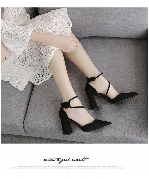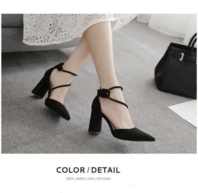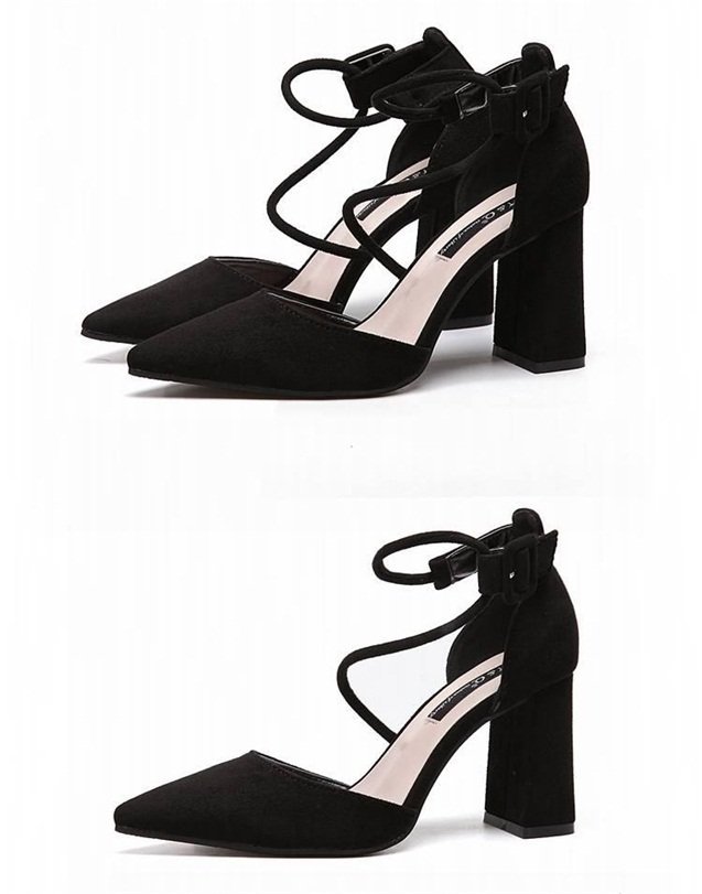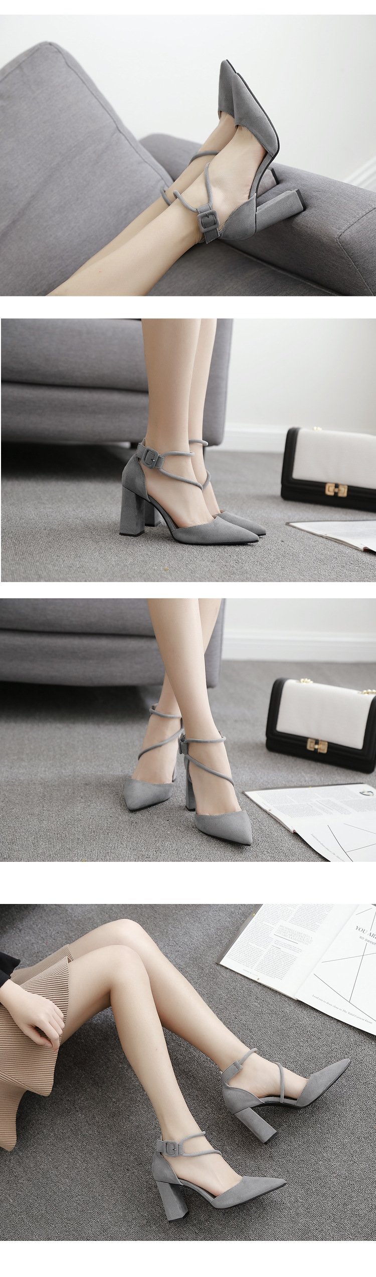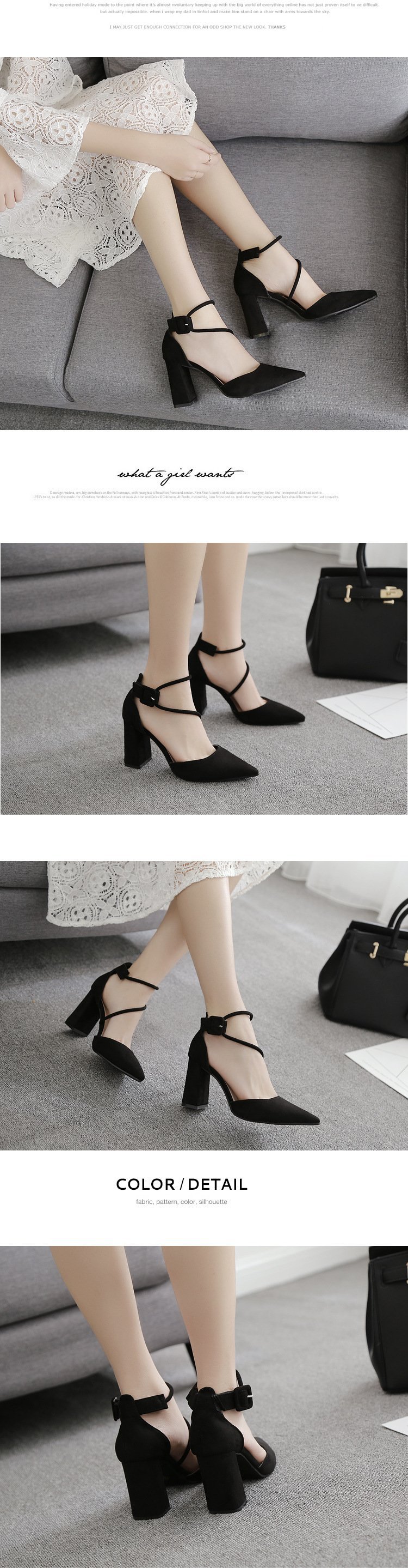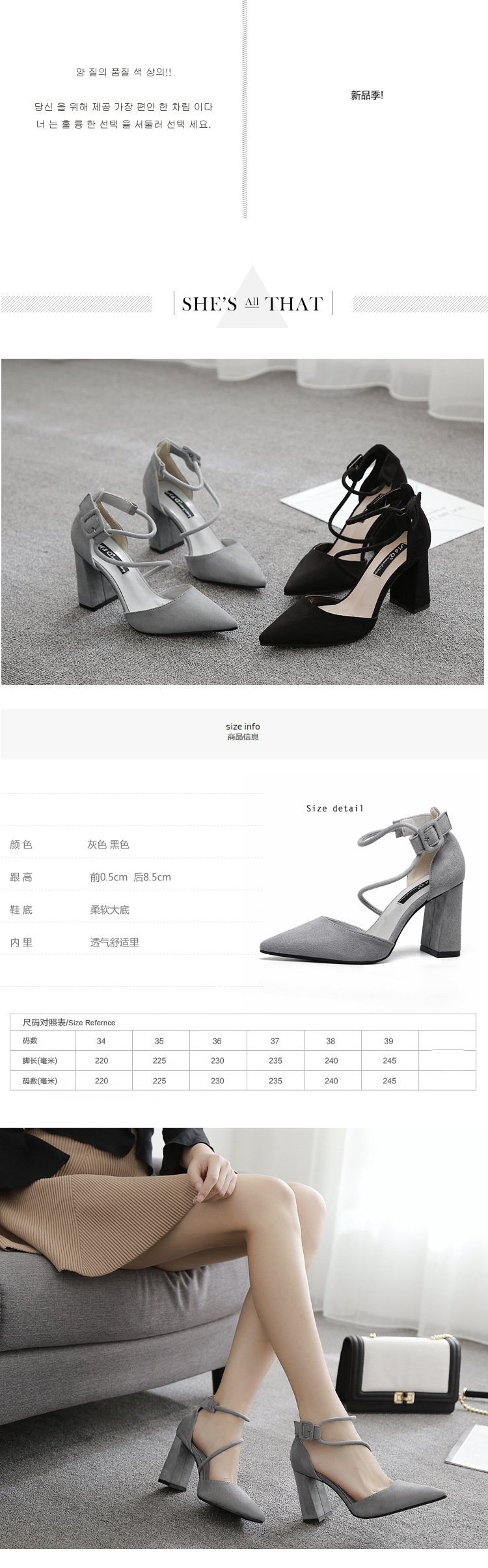 Baotou 중형 힐 샌들 여성 2024 년 봄과 여름 새로운 하이힐 스웨이드 청키 힐 뾰족한 스트랩 신발스토어 가기