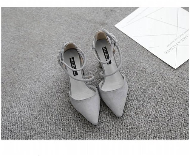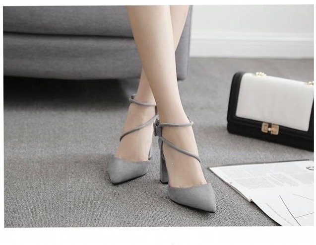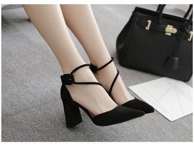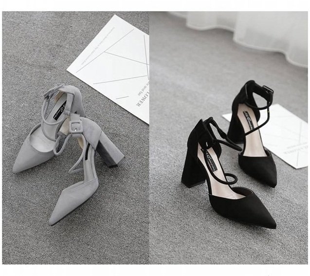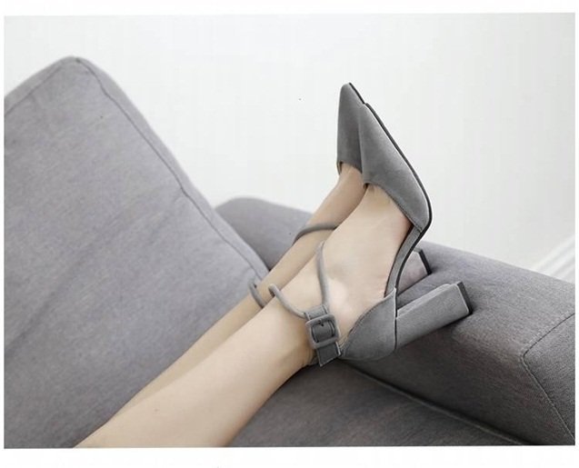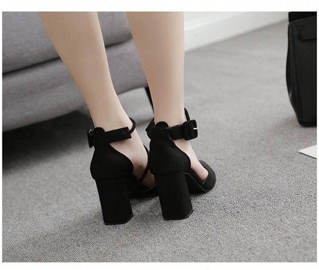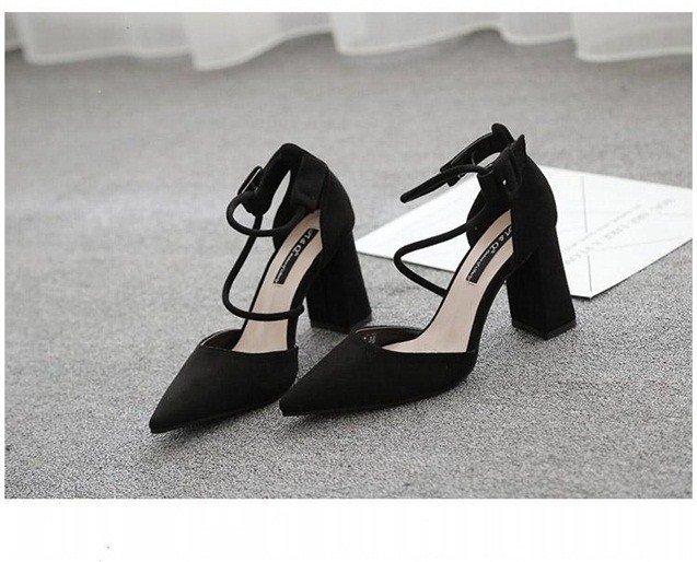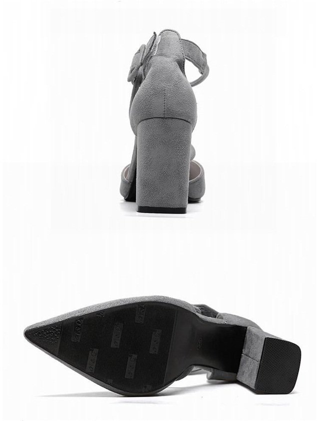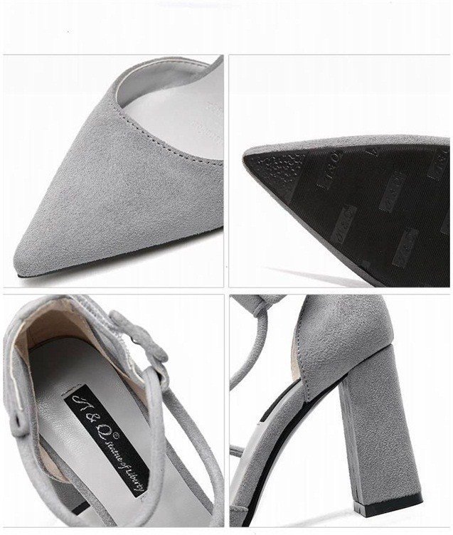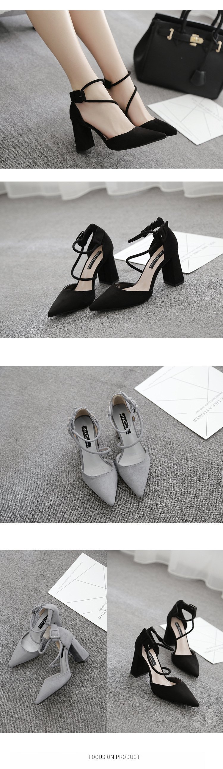 Baotou 중형 힐 샌들 여성 2024 년 봄과 여름 새로운 하이힐 스웨이드 청키 힐 뾰족한 스트랩 신발스토어 가기