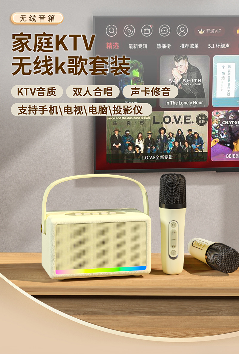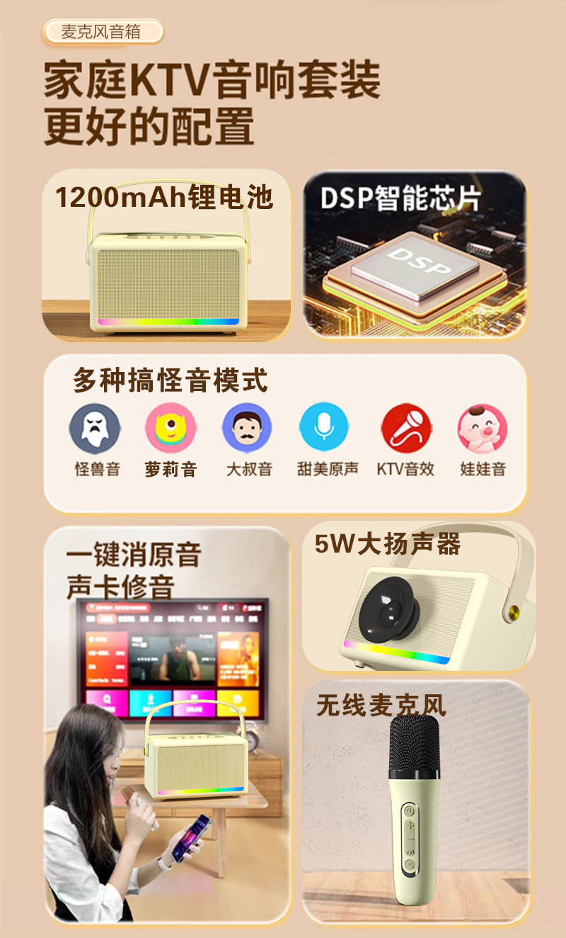 개인 모델 블루투스 스피커 무선 노래방 오디오 마이크 소형 휴대용 노래 홈 KTV 고음질스토어 가기