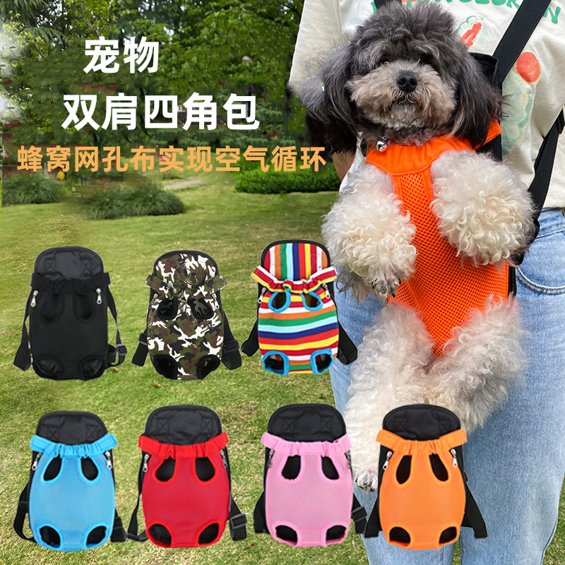 애완 동물 배낭 나가는 메쉬 통기성 가슴 4 개 배낭 휴대용 개 걷는 손 무료 개 배낭스토어 가기