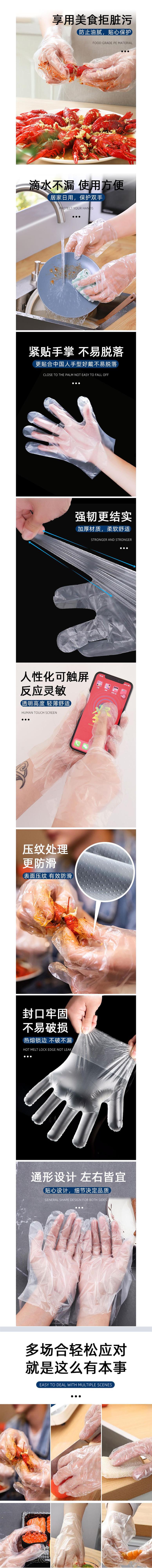 100 일회용 장갑 식품 등급 두꺼운 플라스틱 필름 케이터링 상업용 가사 방수 및 내구성 1000스토어 가기