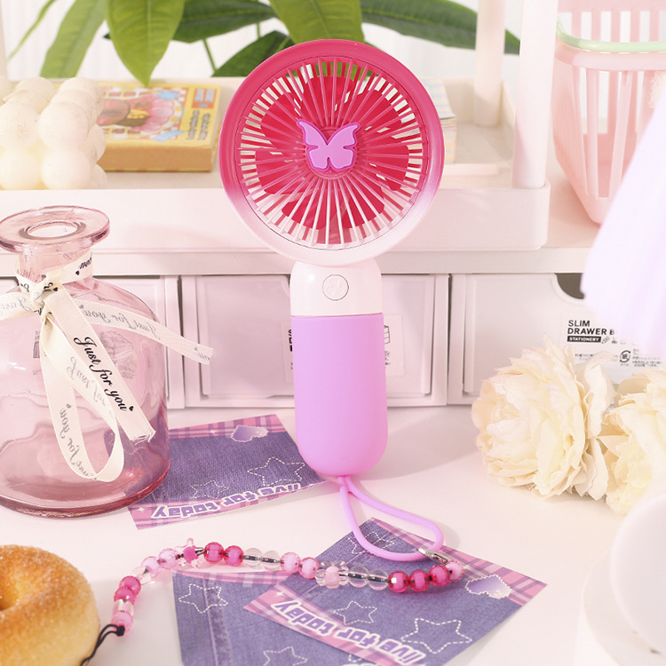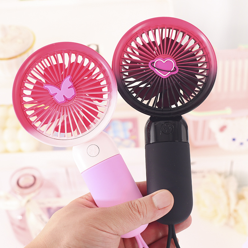 달콤한 시원한 핑크 심장 그라디언트 부드러운 접착제 핸드 헬드 팬 하이 컬러 값 더블 휴대용 귀여운 팬 기숙사 작은 팬