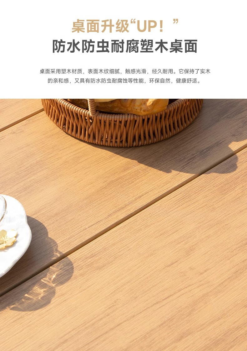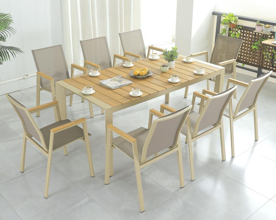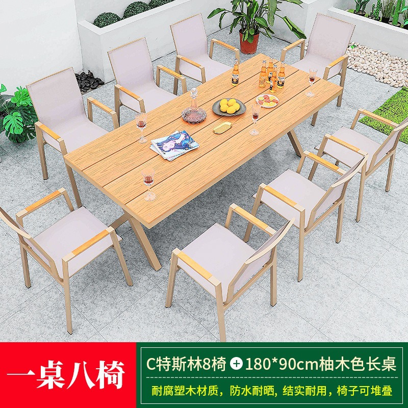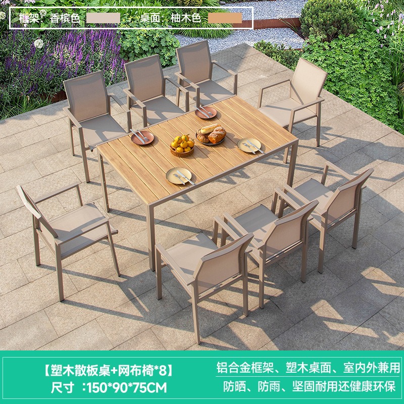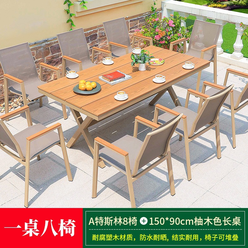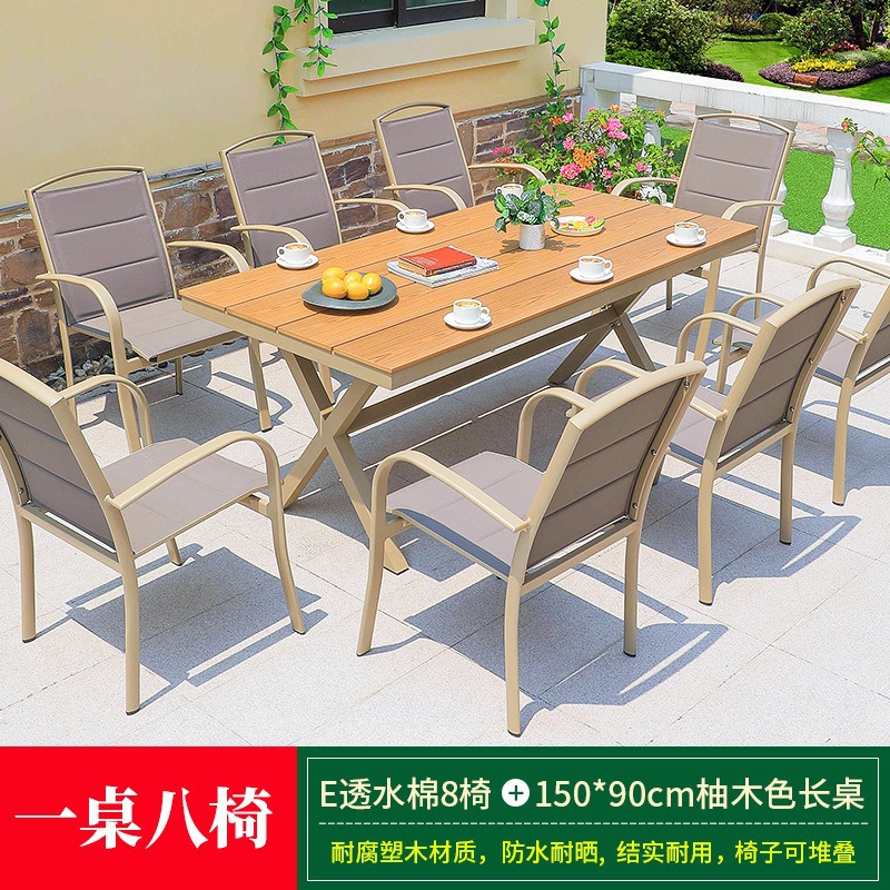 • E 업그레이드 투과성 면 8 의자 150_90cm 티크 컬러 긴 테이블