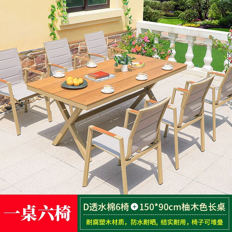 • D 업그레이드 된 투과성 면 6 의자 150_90cm 티크 컬러 긴 테이블