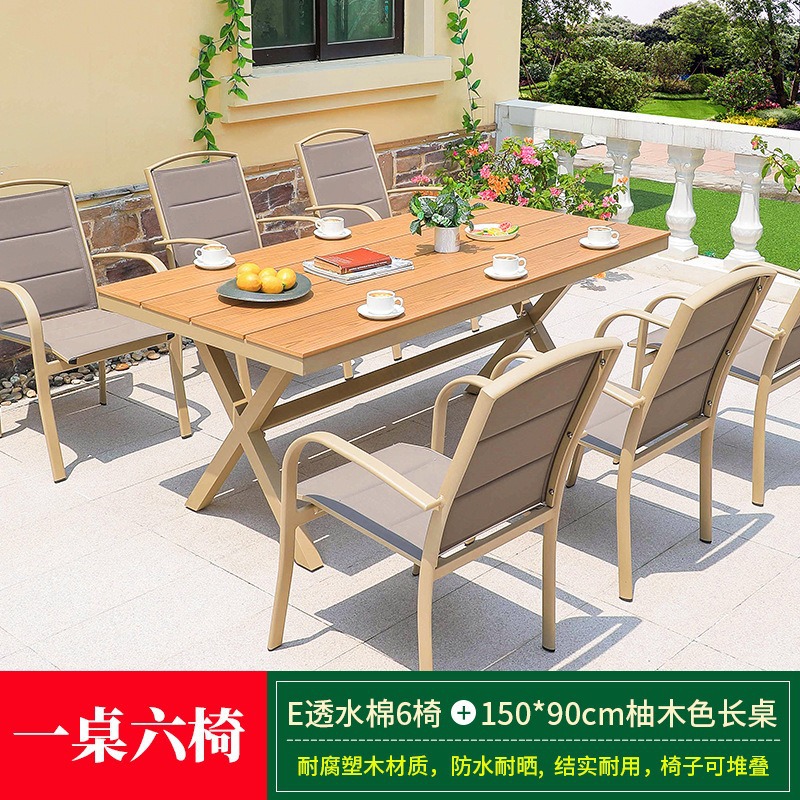 • E 업그레이드 된 투과성 면 6 의자 150_90cm 티크 컬러 긴 테이블