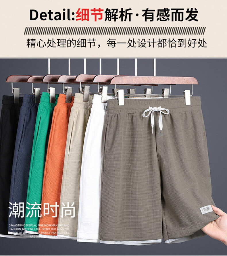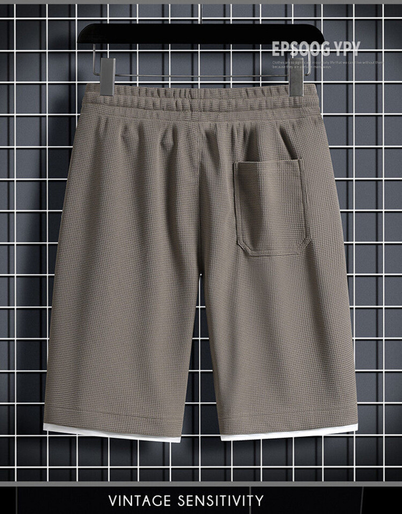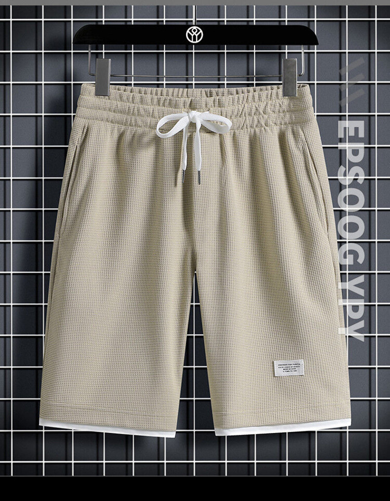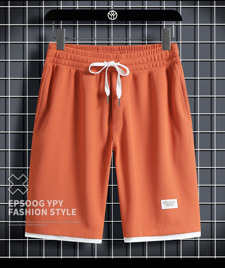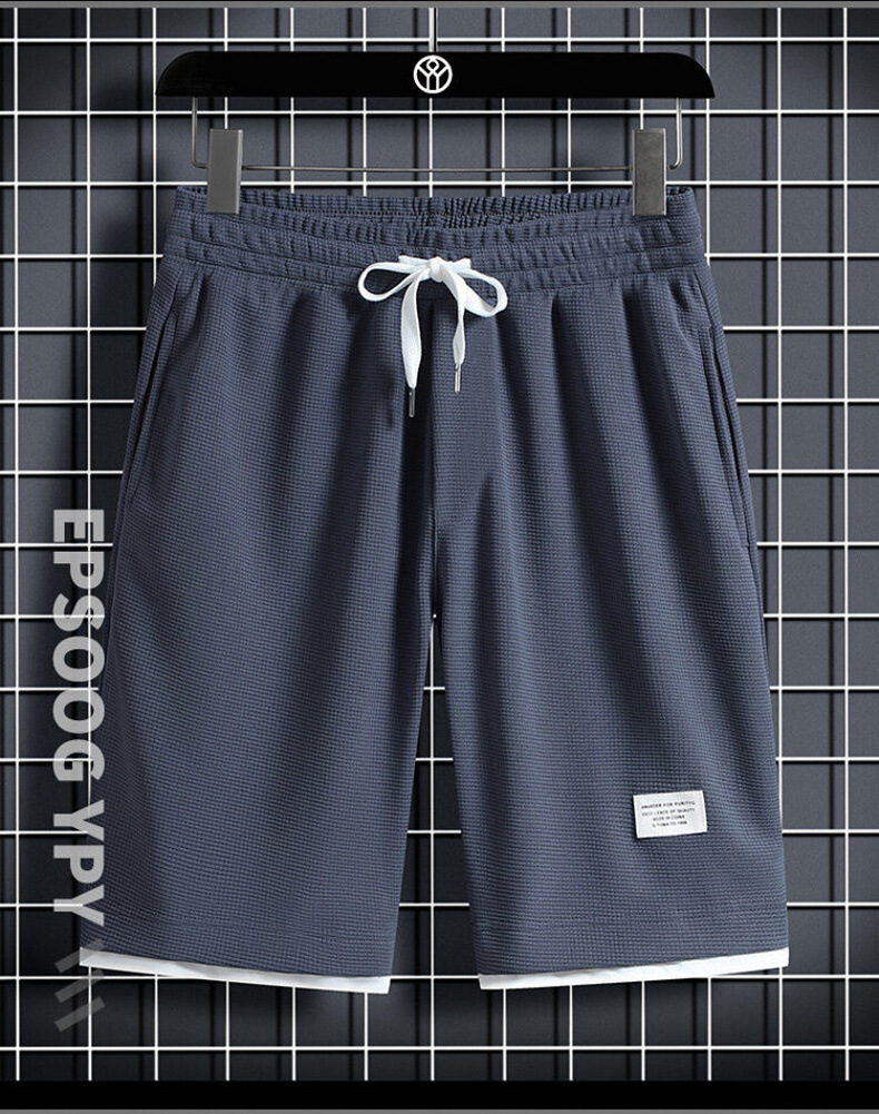 와플 반바지 남자 가짜 투피스 루즈 캐주얼 미드 팬츠 여름 얇은 트렌디 브랜드 농구 퀵 드라이 반바지스토어 가기