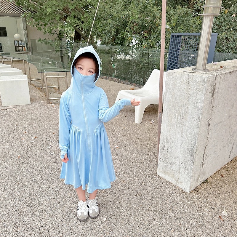 소녀 선 스크린 의류 2024 년 여름 새로운 아이스 실크 어린이 경량 재킷 통기성 긴 아기 에어컨 의류 서양식스토어 가기