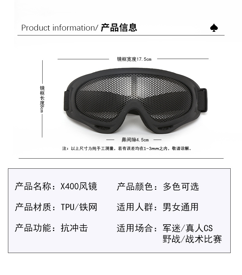 X400 철 메쉬 고글 CS 군용 팬 슈팅 필드 실제 방탄 충격 방지 고글 오토바이 방진 바람스토어 가기