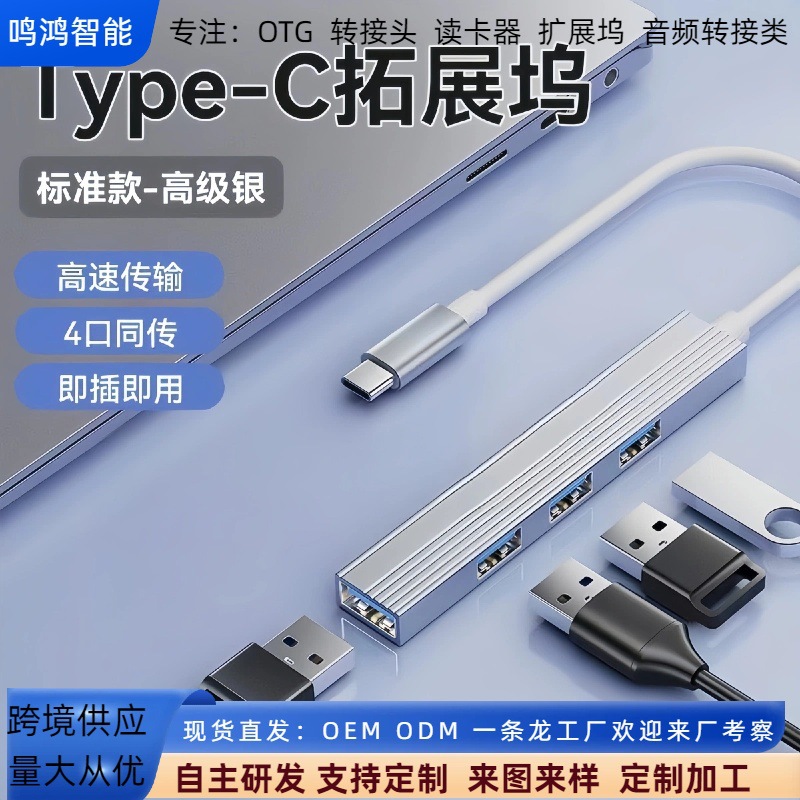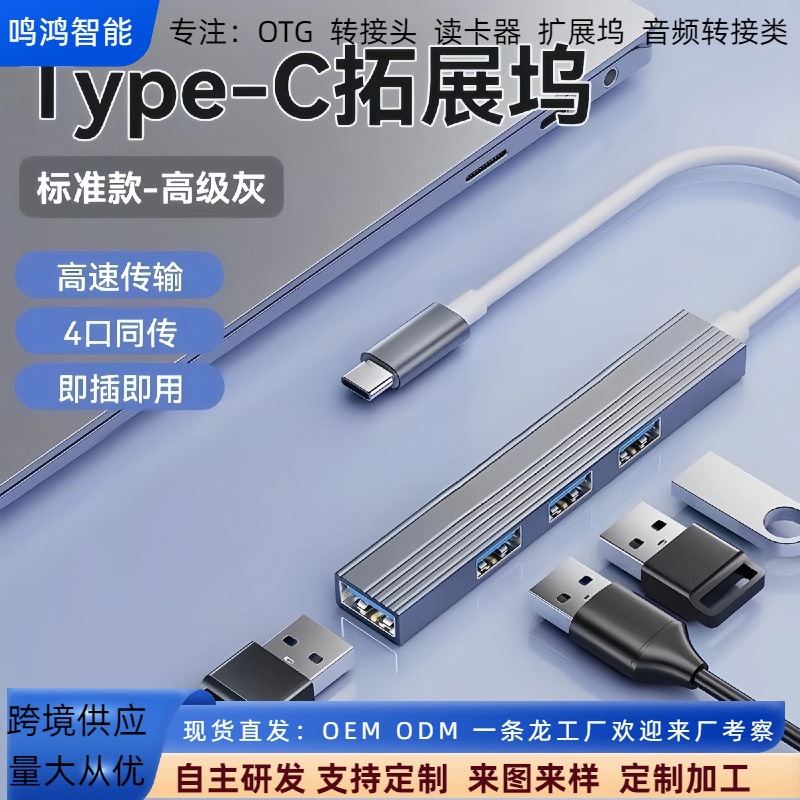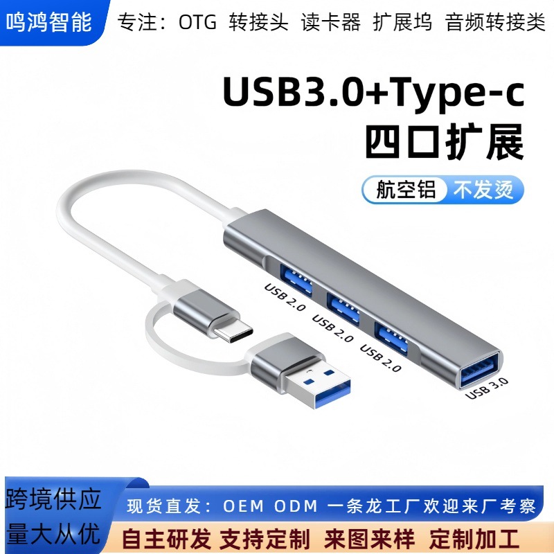 • 2.0 Type-C 수컷 - 3 USB 암컷 + 1 Type-C 암컷 타원형 회색 알루미늄 케이스