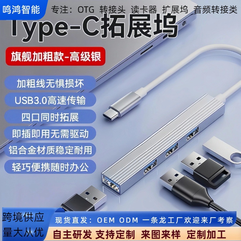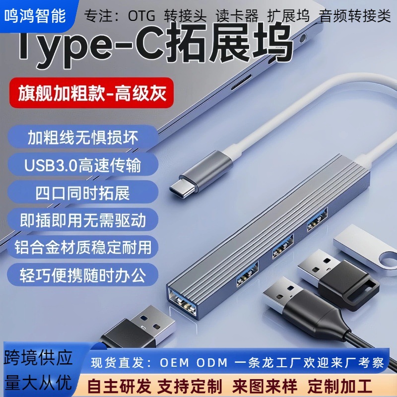 • USB 플립 Type-C 드래그 4USB 암 회색 타원형 알루미늄 쉘