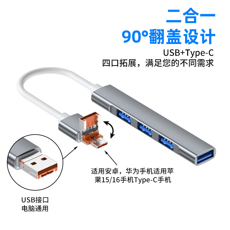 • USB 플립 Type-C 드래그 4USB 암 회색 스트립 알루미늄 쉘