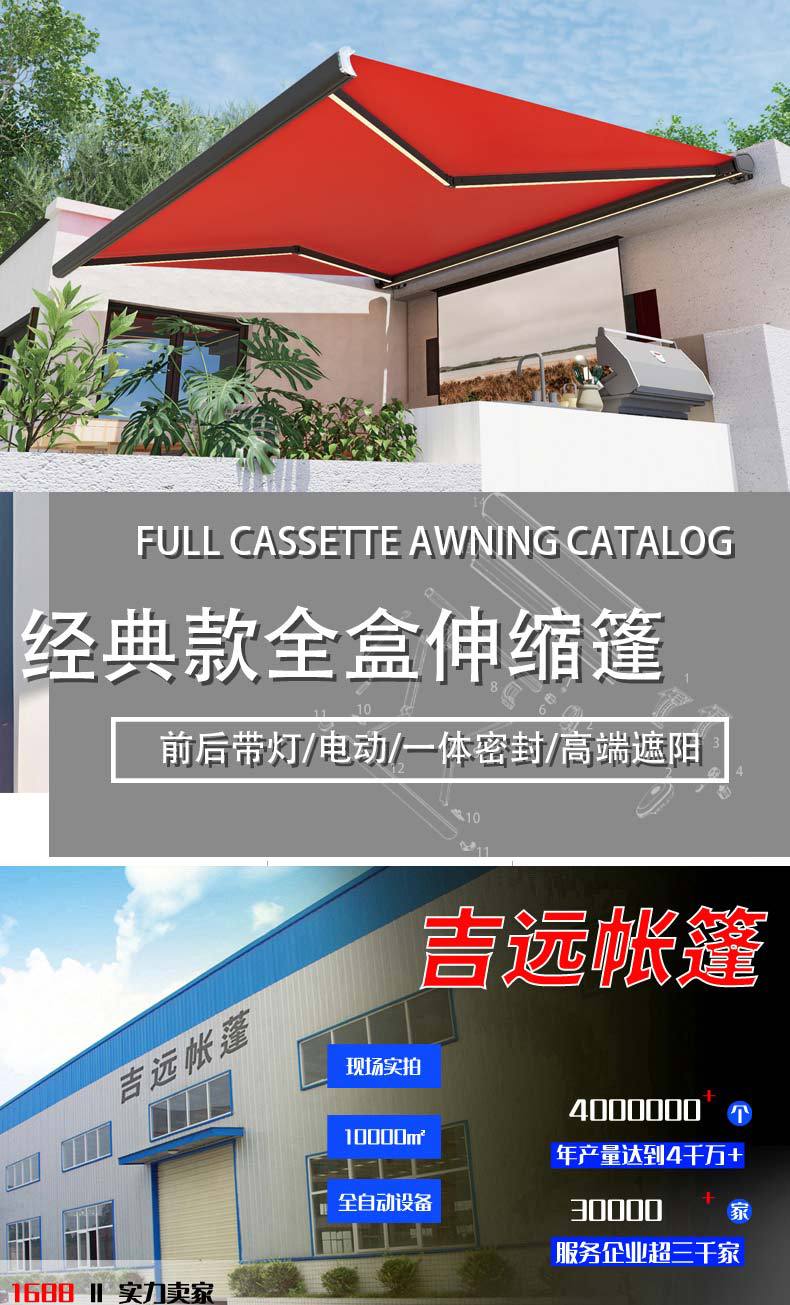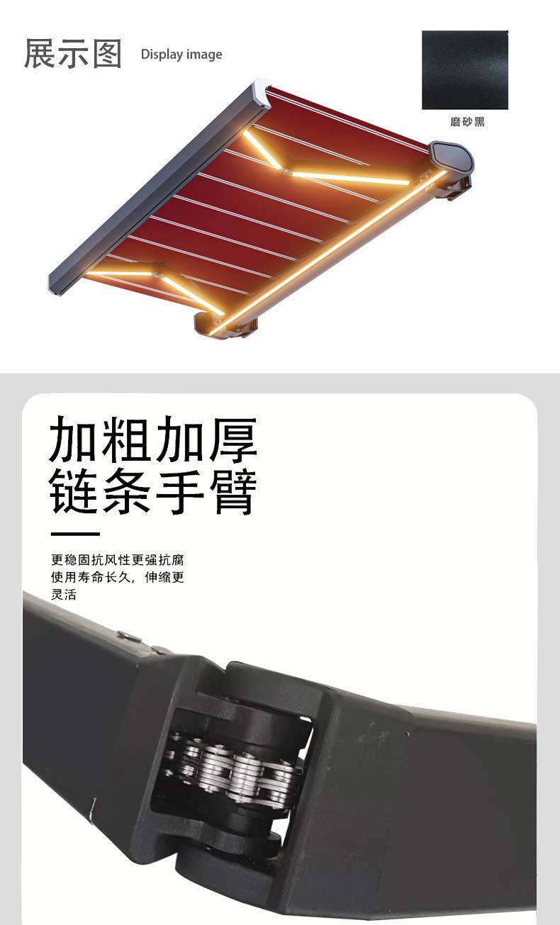 풀박스 회색 전동 차양 알루미늄 합금 차양 빌라 발코니 안뜰 전동 풀박스 개폐식 차양 조명 포함스토어 가기