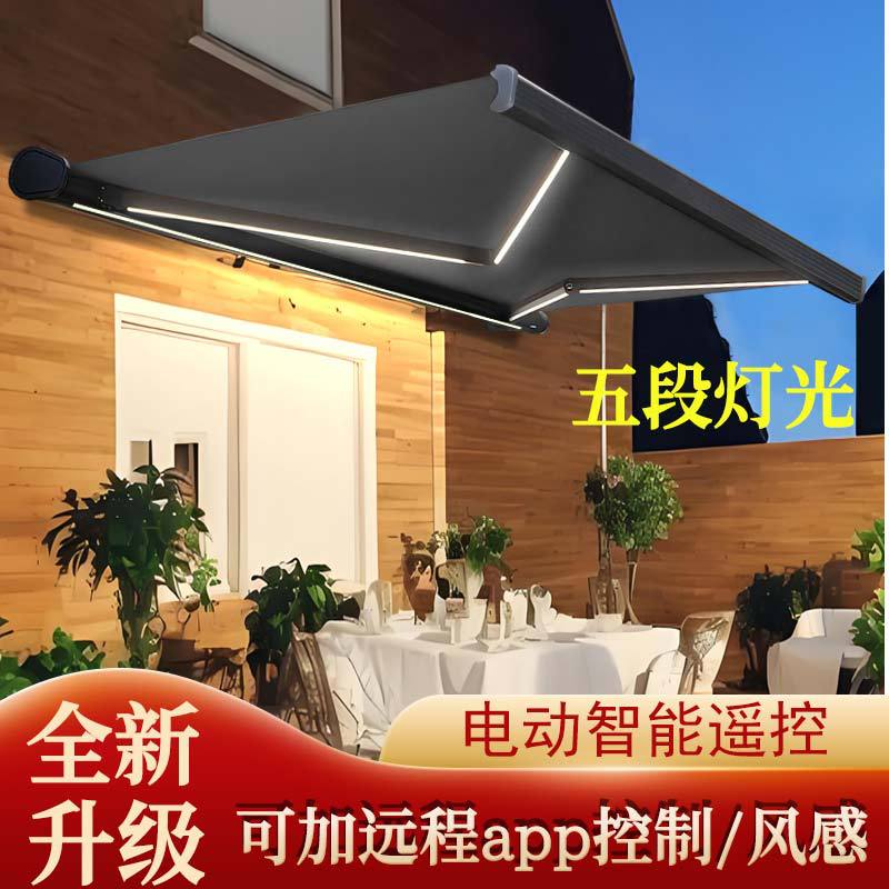 풀박스 회색 전동 차양 알루미늄 합금 차양 빌라 발코니 안뜰 전동 풀박스 개폐식 차양 조명 포함