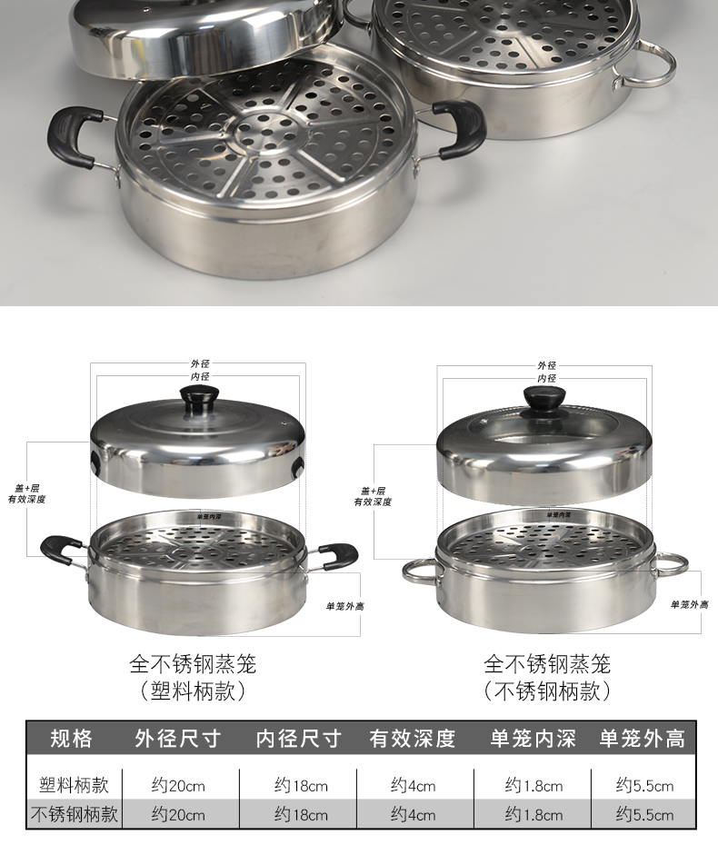 모든 스테인레스 스틸 증기선 18cm 작은 찐 만두 찐 만두 케이지 커버 샤 카운티 스낵 장비 식기 상업