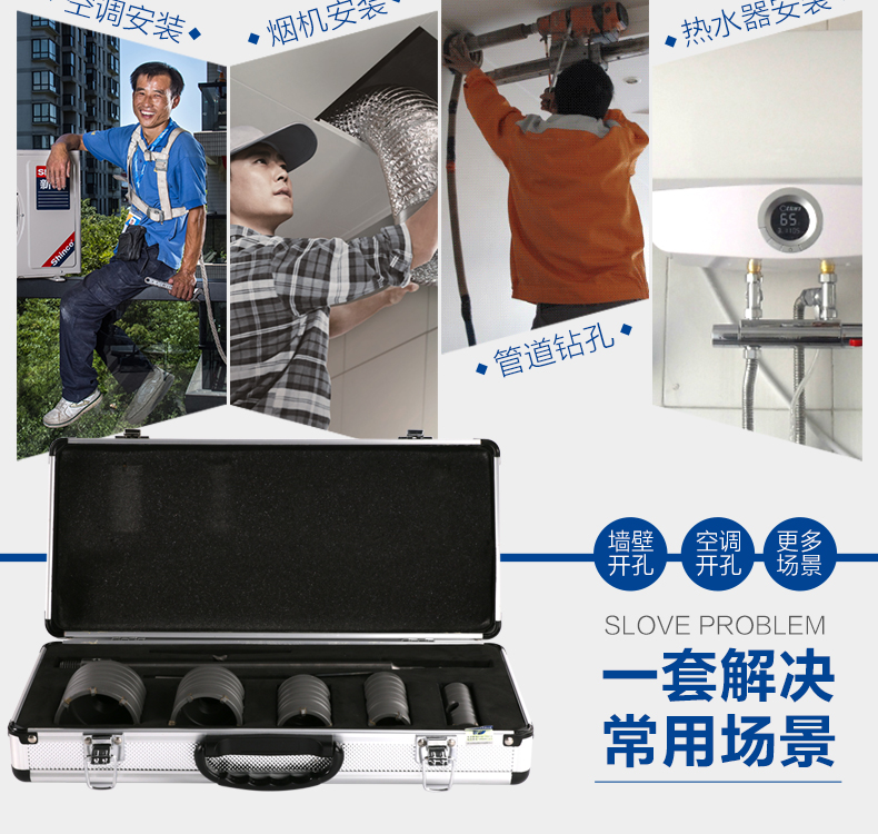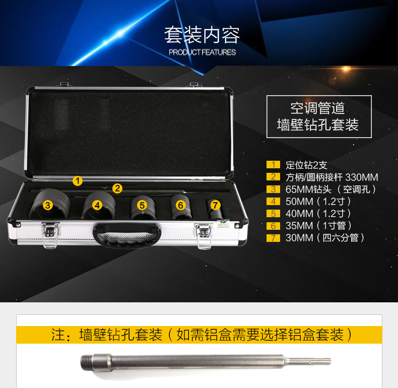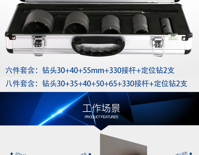 • 사각 손잡이 4피트 벽 개구부 30+35+40+50+65mm 알루미늄 결합 도구 상자 8개 세트