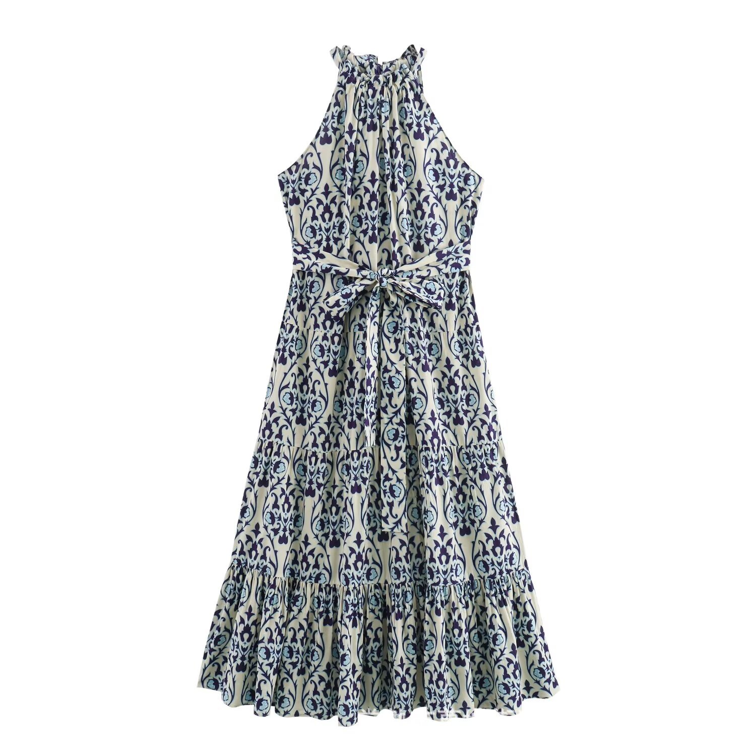 UC & ZA 국경 간 AliExpress 유럽과 미국 스타일 여성 여름 패션 숄더 프린트 교수형 칼라 원피스 5598045