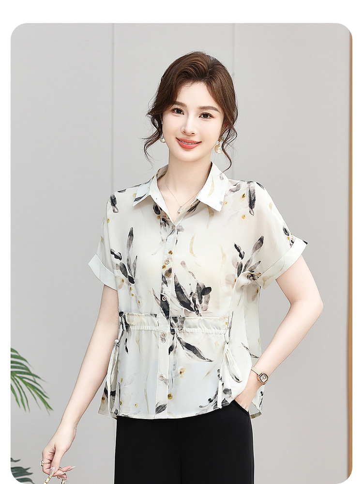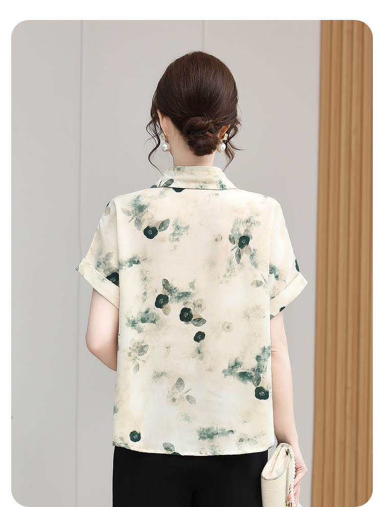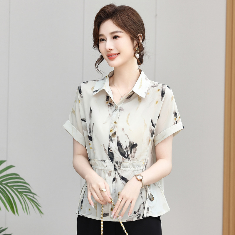 어머니 옷 여성의 여름 새로운 반팔 셔츠 중년 및 노인 여성 패션 최고 연령을 줄이는 벨리 커버 티셔츠