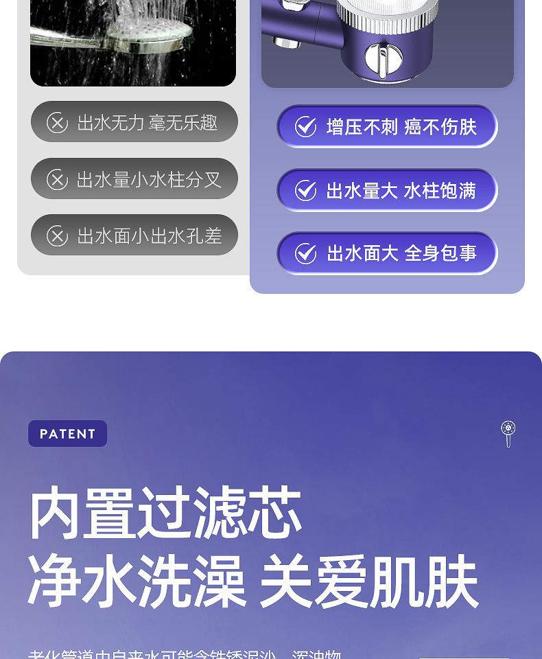 • Yaoshi Zi-Dai 스프레이 유연한 슈퍼차지 다기능 샤워 헤드
