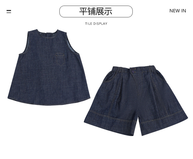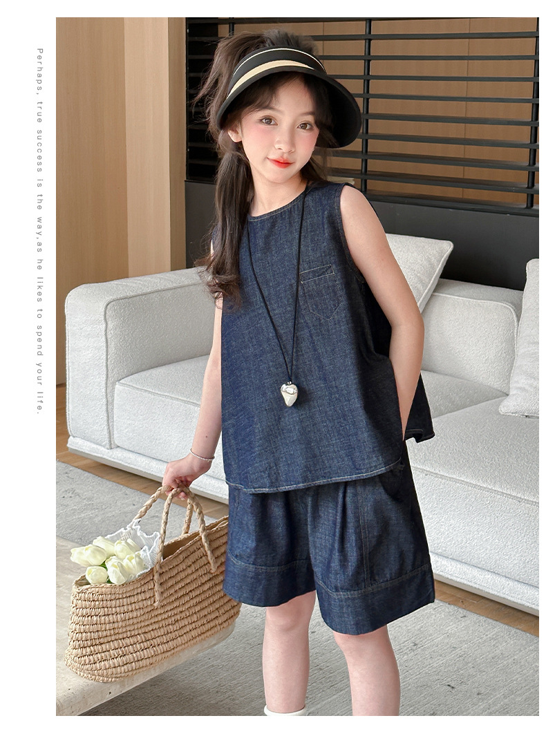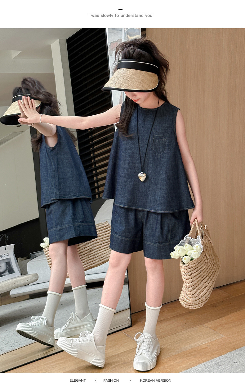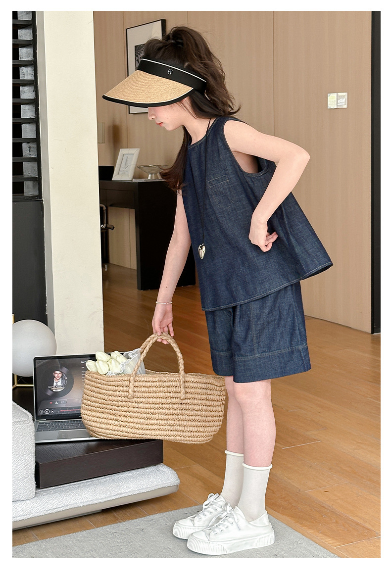 여자 여름 옷 데님 반팔 세트 2024 여자 큰 어린이 옷 서양식 유행 인터넷 연예인 여름 유행 옷스토어 가기
