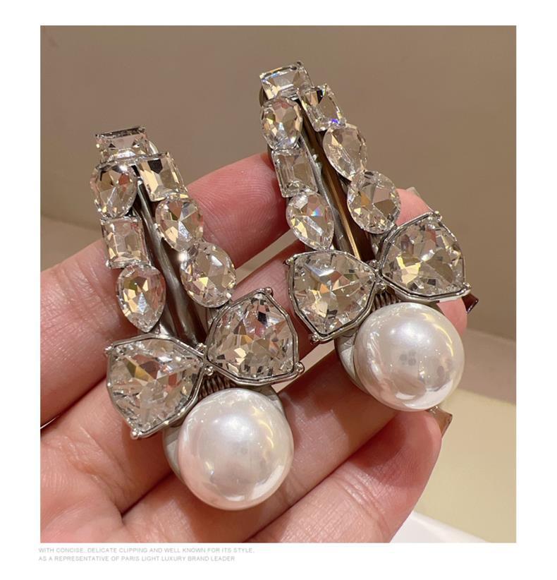 빛나는 큰 라인스톤 중공업 합금 덕빌 클립 하이라이트 진주 달콤한 기질 사이드 클립 고급 센스 헤어핀 사이드 클립 여성스토어 가기