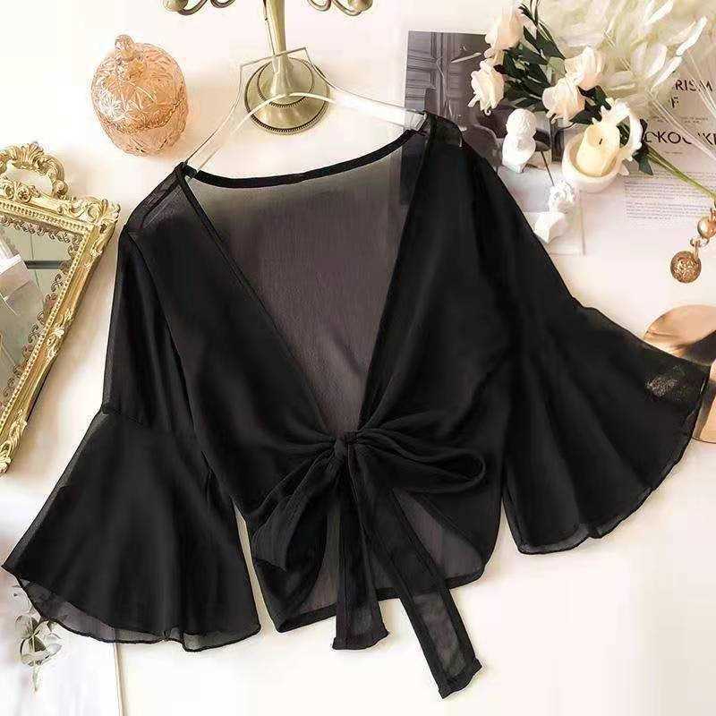 작은 목도리 여성의 여름 스커트 쉬폰 레이스 카디건 짧은 외부 재킷 판초 선 스크린 에어컨 셔츠스토어 가기