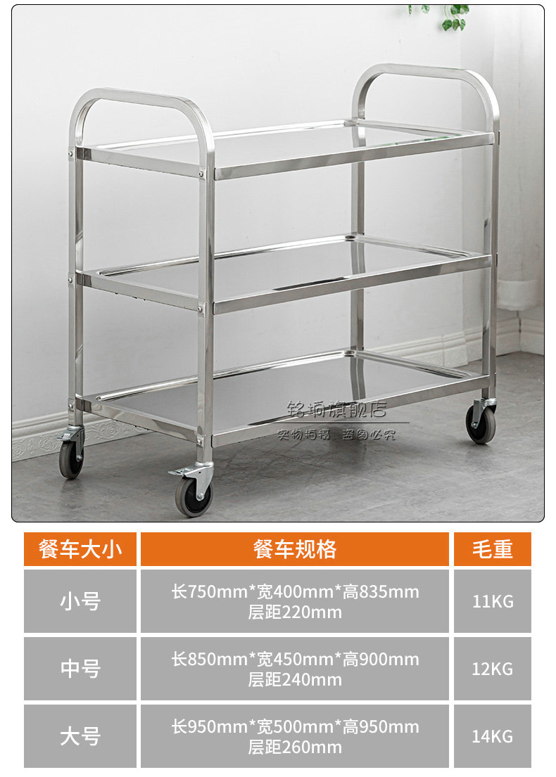 304 두꺼운 스테인레스 스틸 다이닝 카 트롤리 호텔 레스토랑 영수증 호텔 와인 주방 그릇 스톨 스토리지 랙