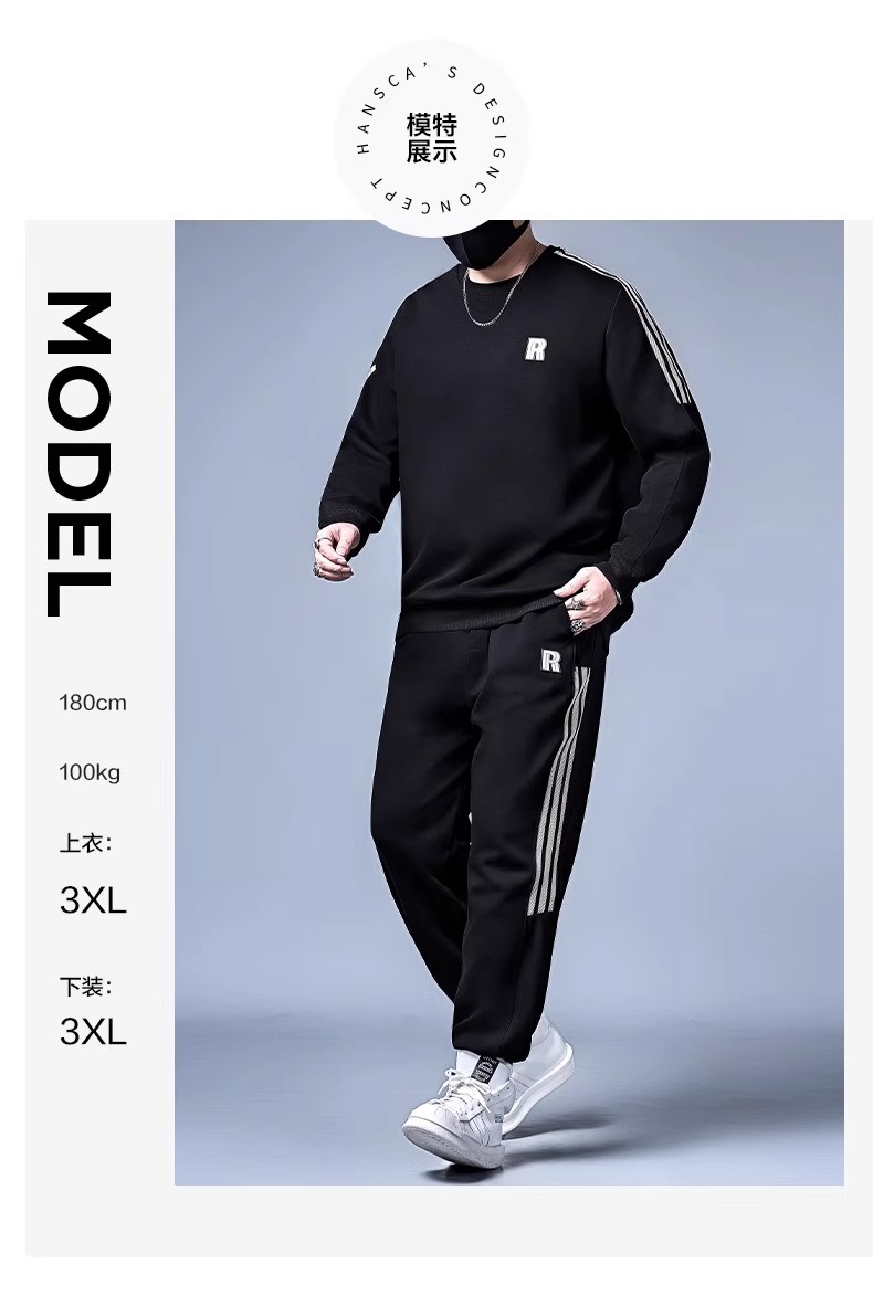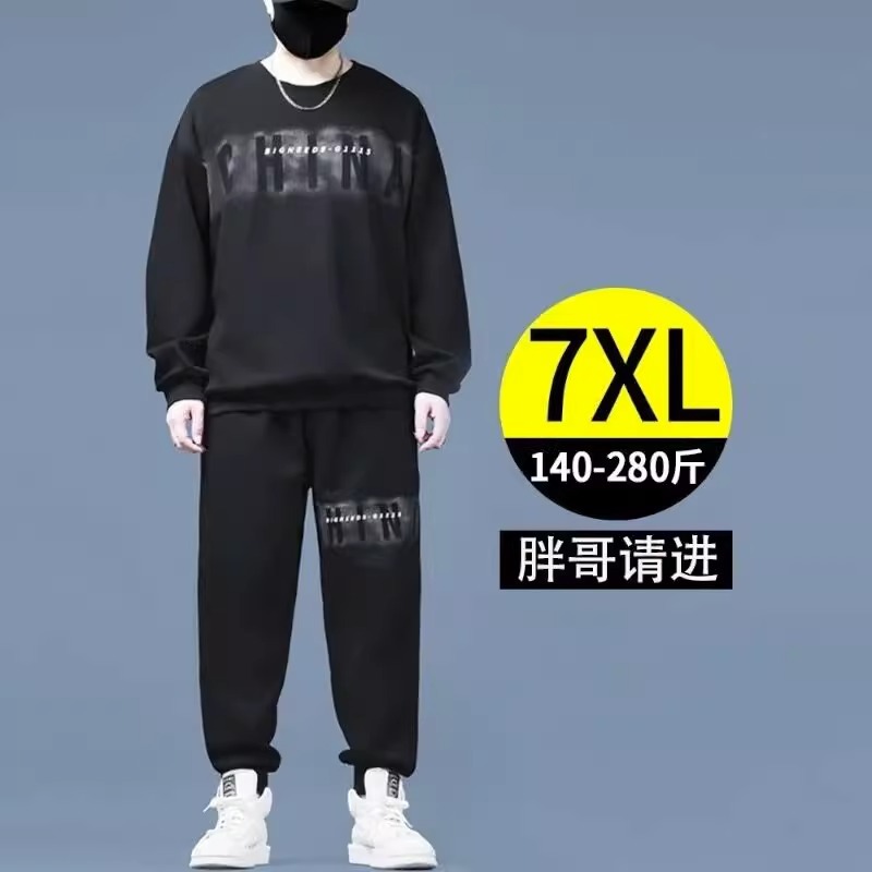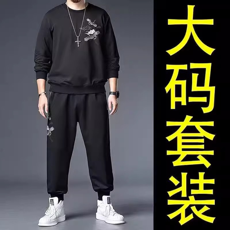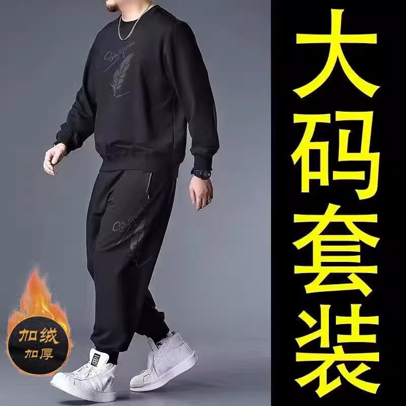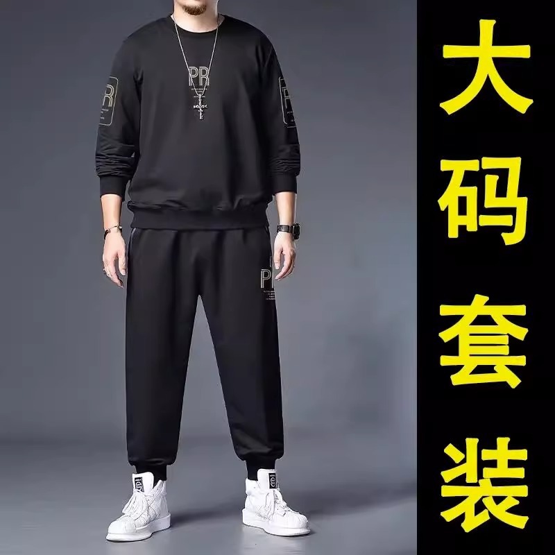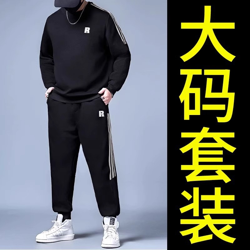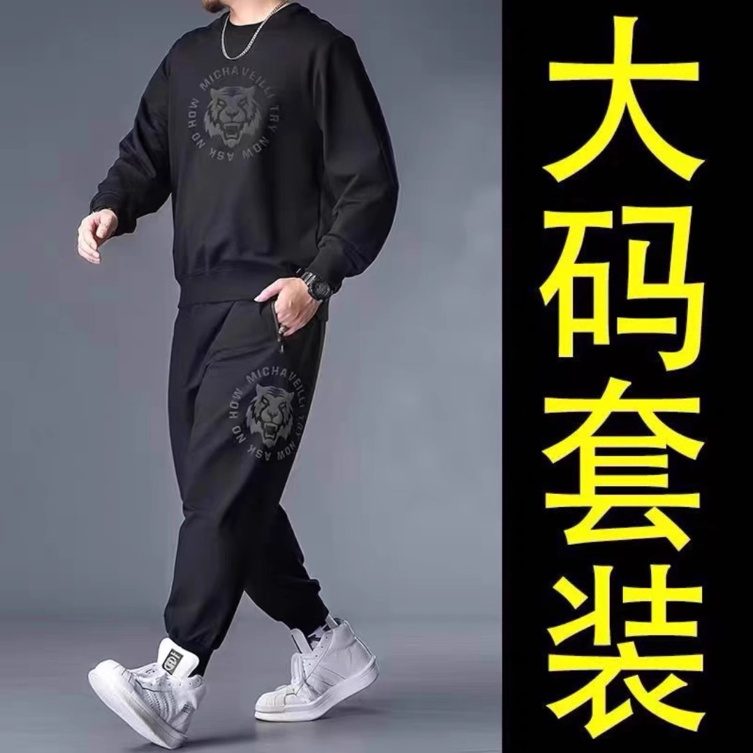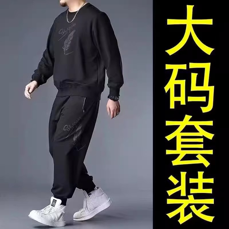 플러스 사이즈 스웨트 셔츠 스포츠 세트 남자 봄과 가을 남자 팻 플러스 루즈 캐주얼 투피스 세트 3 바스토어 가기