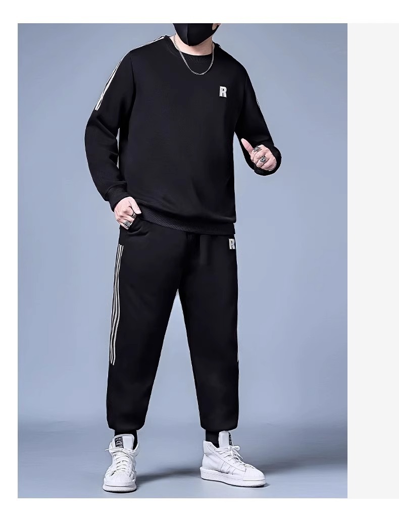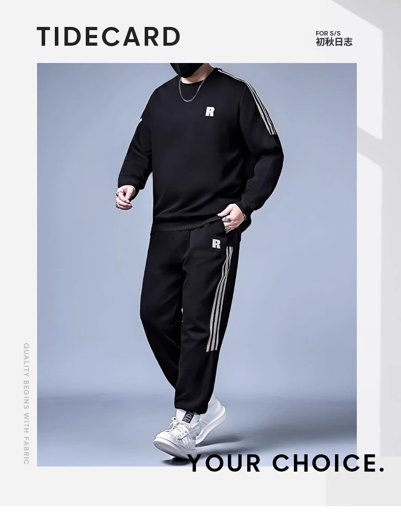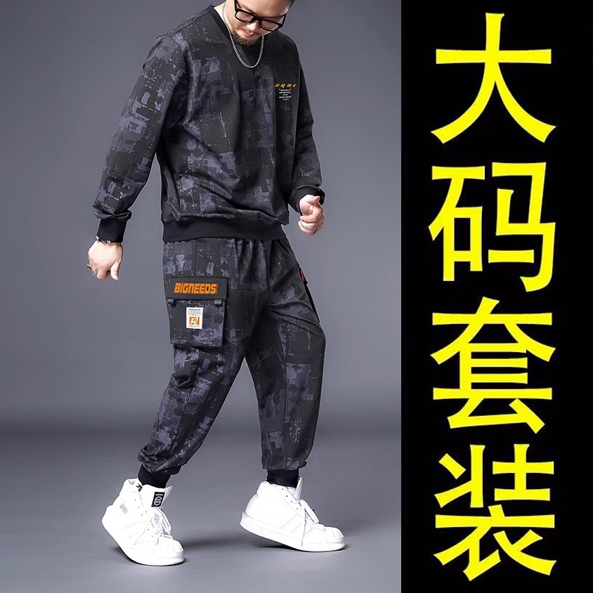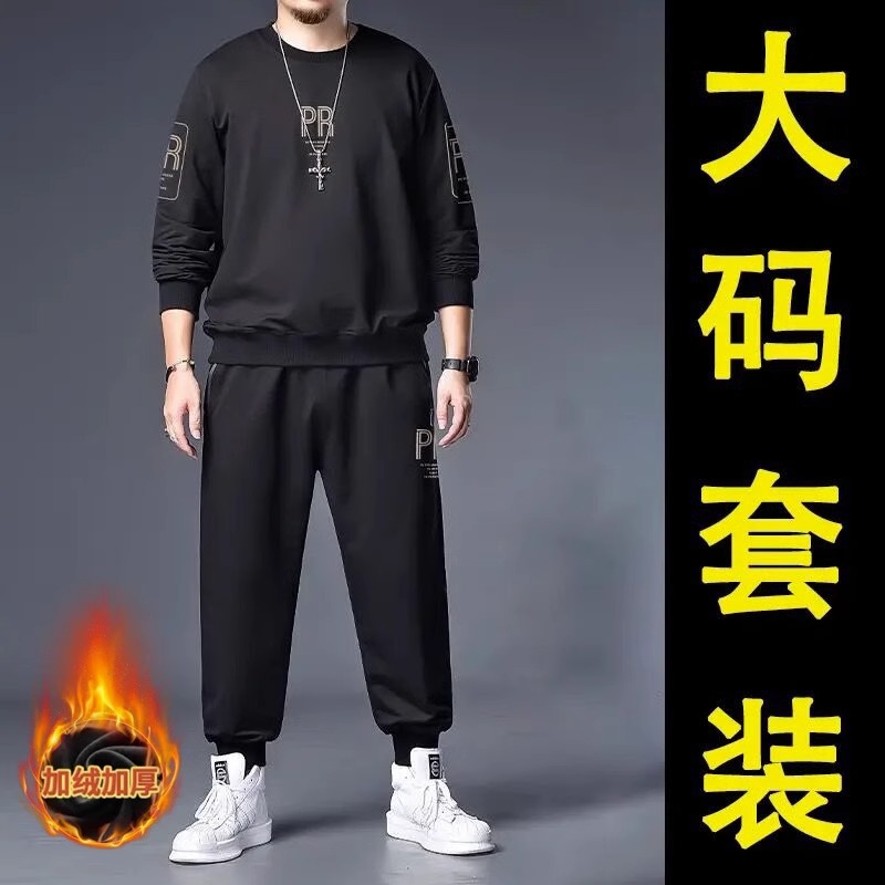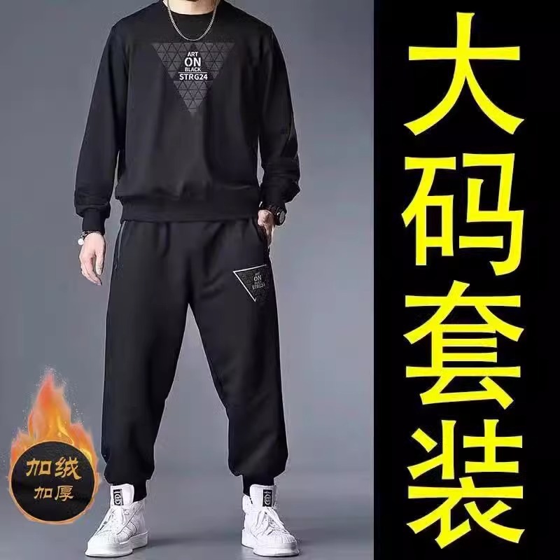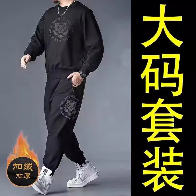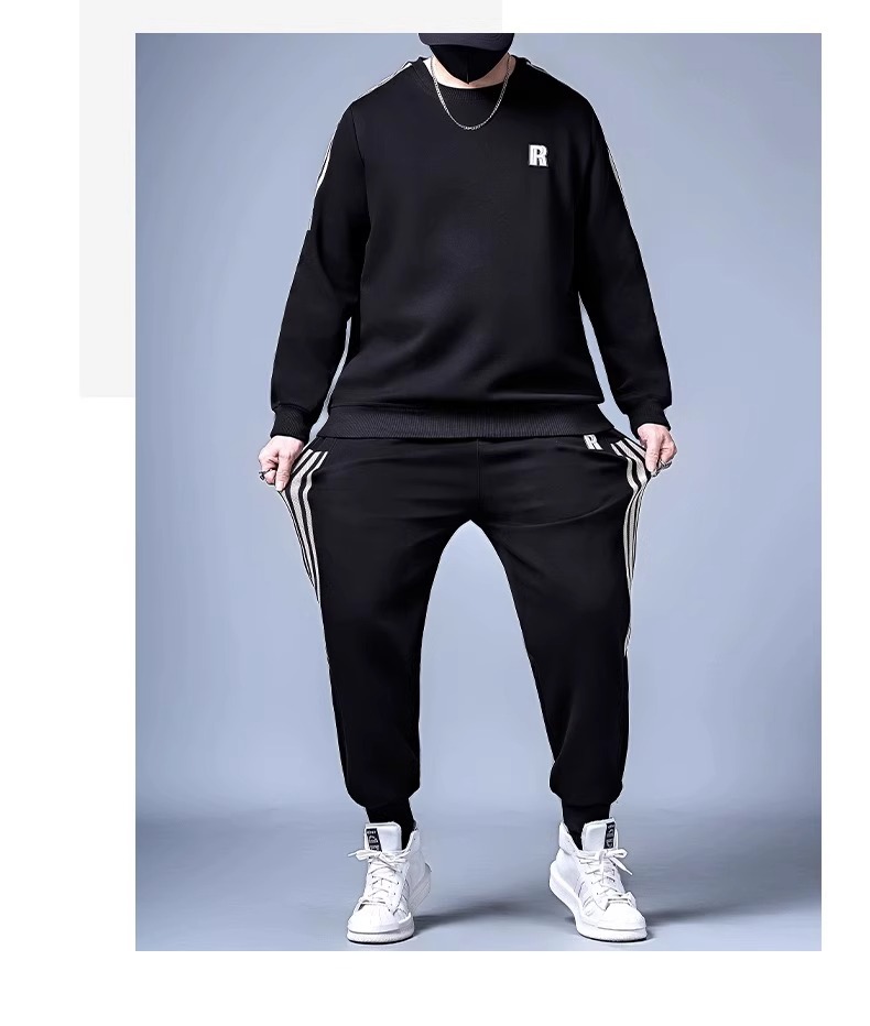 플러스 사이즈 스웨트 셔츠 스포츠 세트 남자 봄과 가을 남자 팻 플러스 루즈 캐주얼 투피스 세트 3 바스토어 가기
